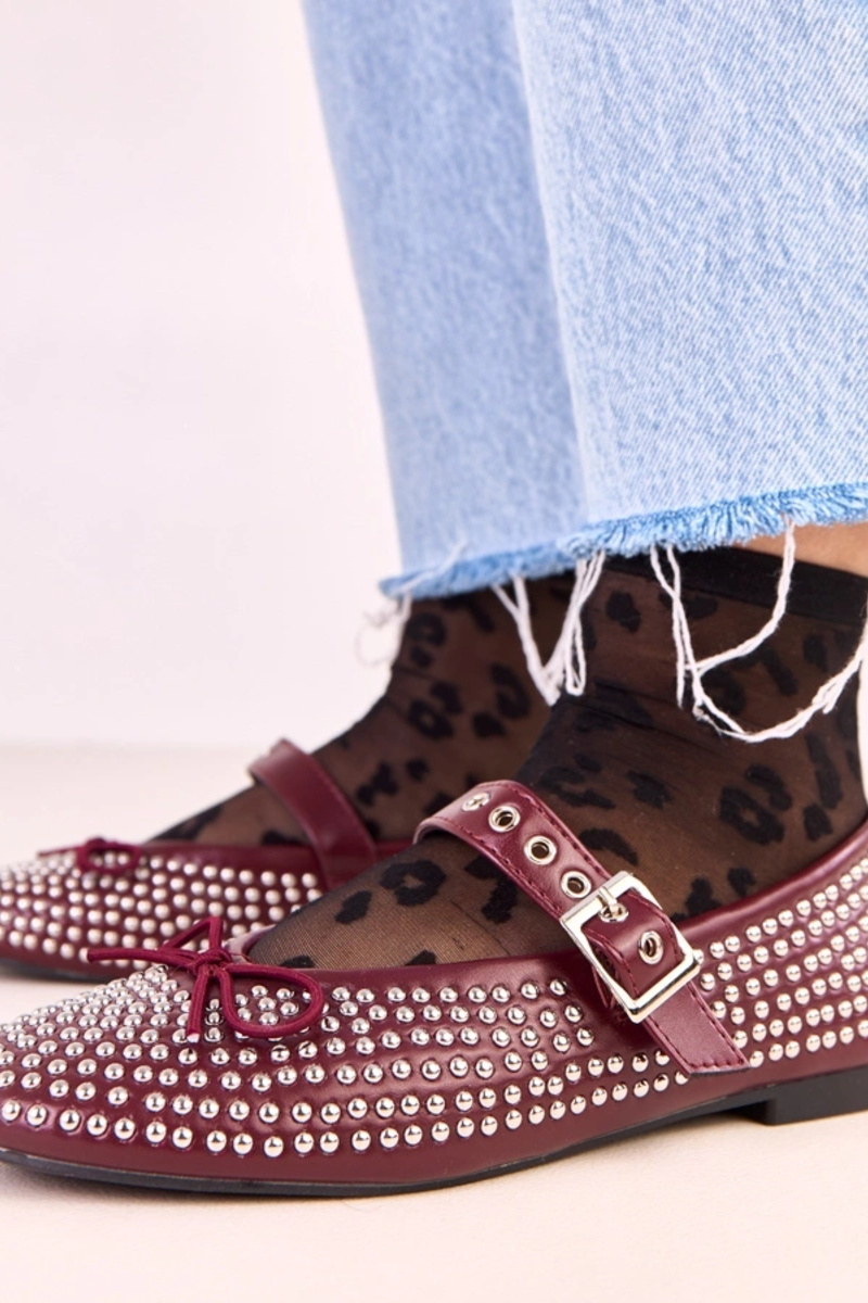 Tumedate punaste Mylie balletikinguud kaunistatud nupudega ja paelaga