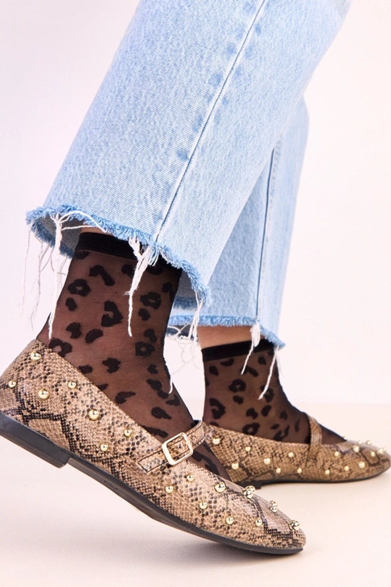Kohvavärvi Selena balletikinguud maohalli mustriga, kaunistatud pärlitega