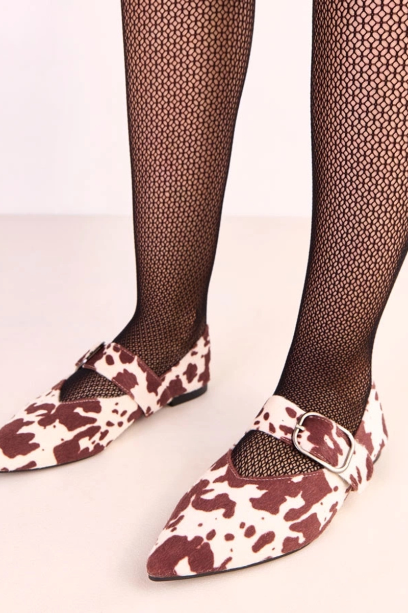 Pruunid ballerina kingad lehma täppide ja pandliga Lena