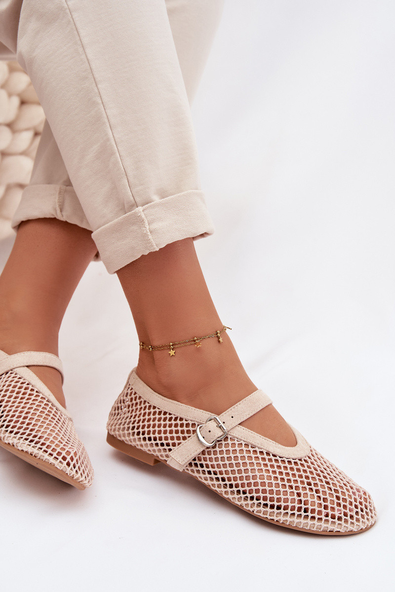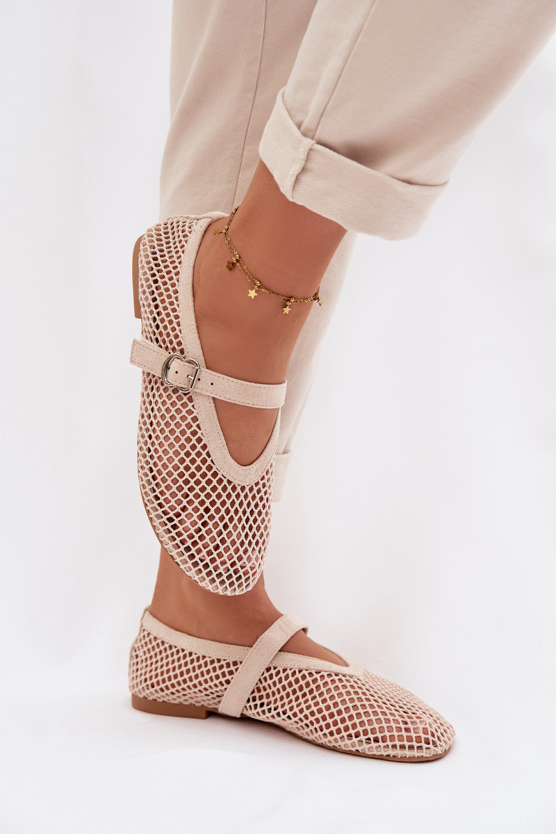 Pherina elevandiluust värvi võrkkudumisega ballerina kingad rihmadega