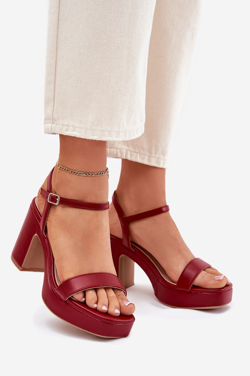 Lillita bordoo värvi naiste kunstnahast sandaalid kontsadega