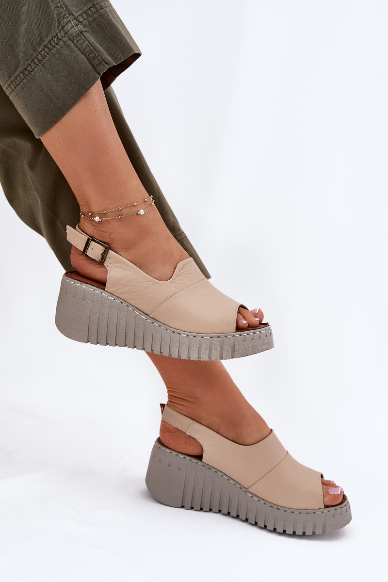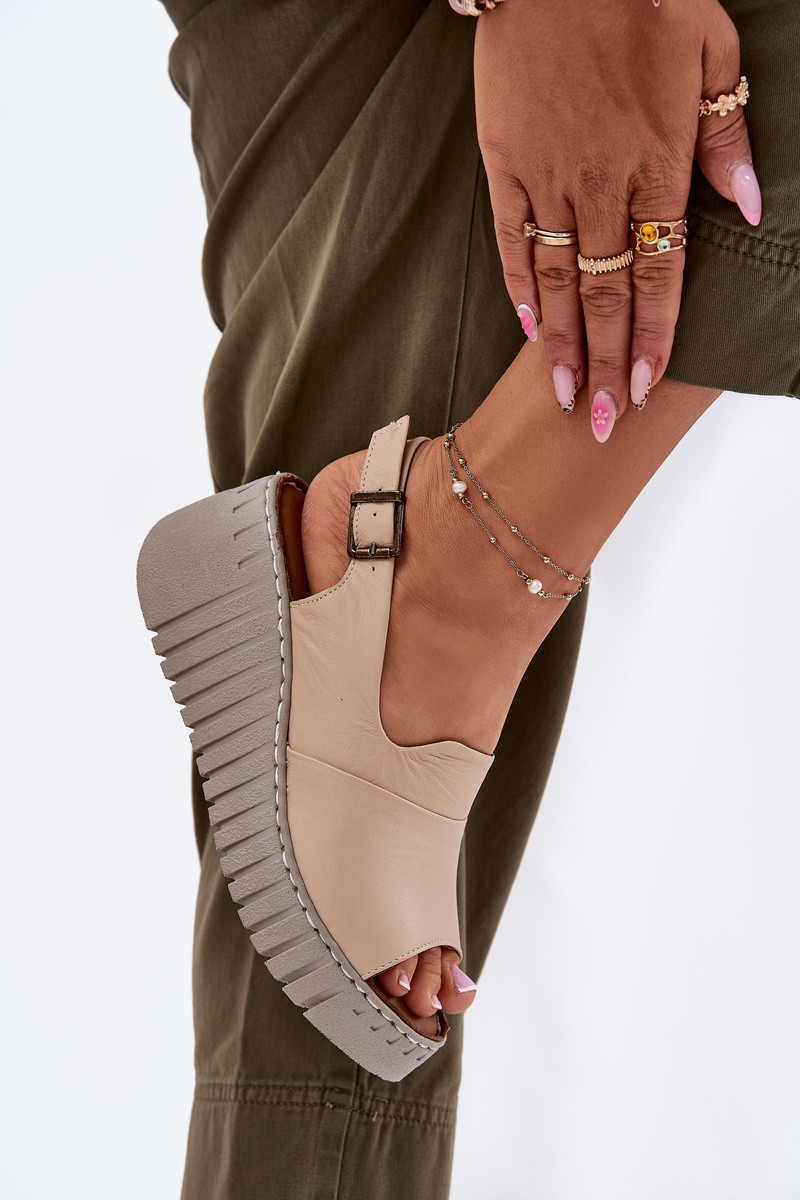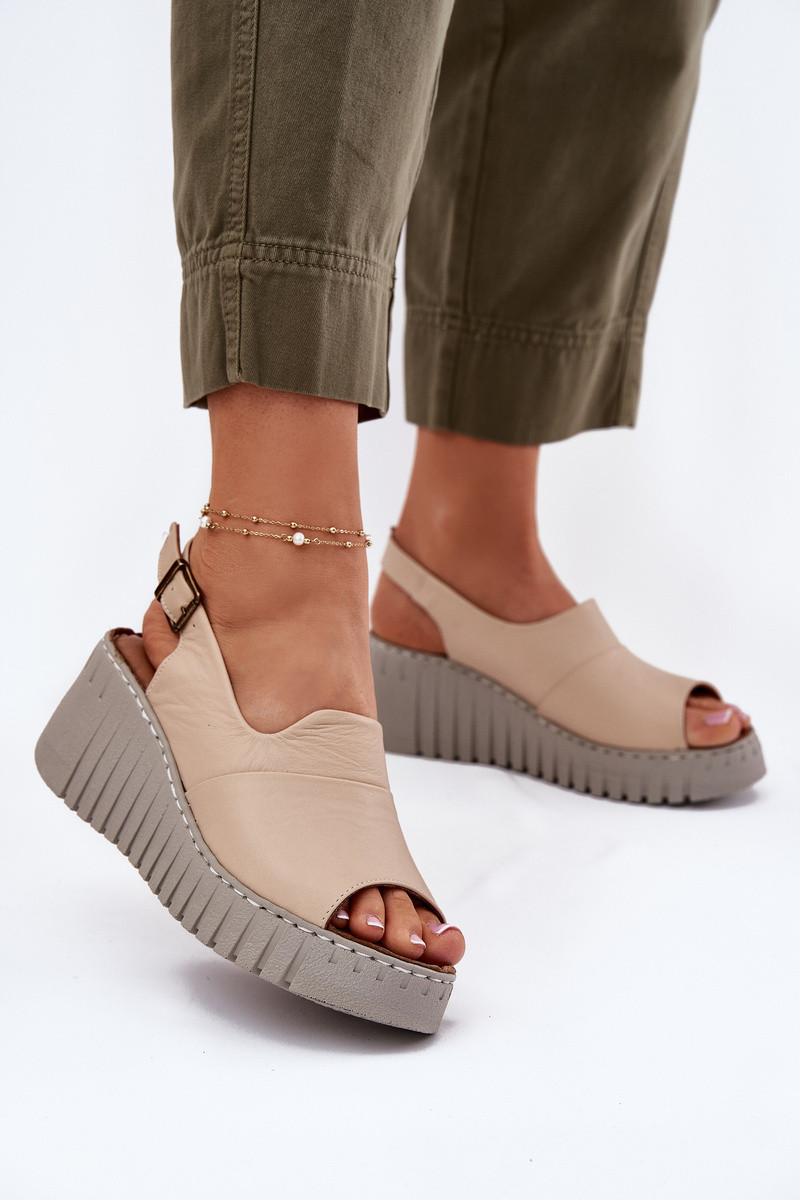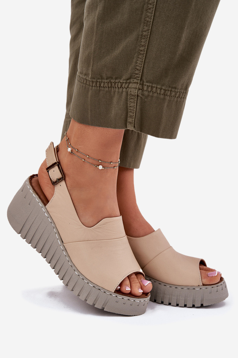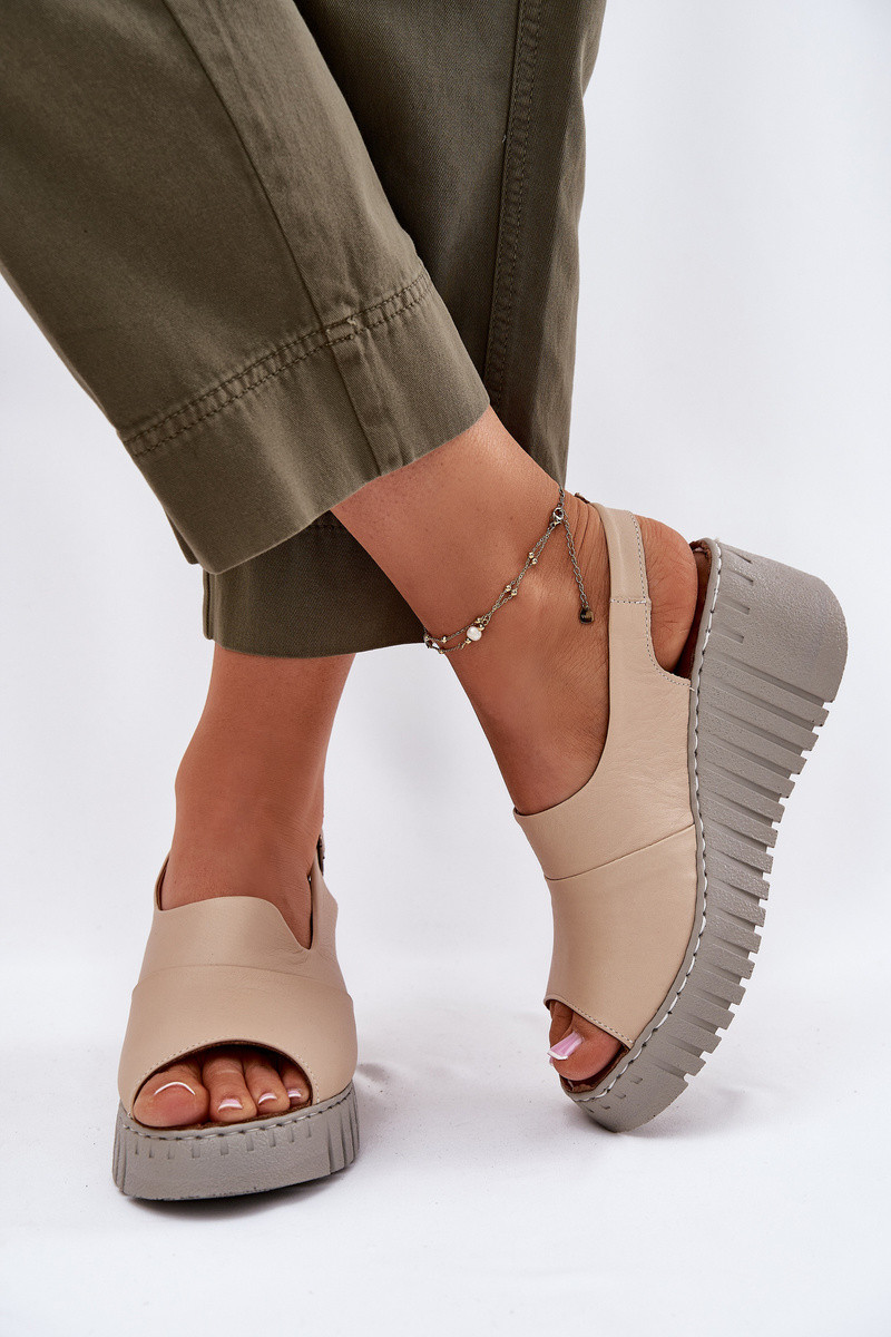 Kreemja värvi naiste sandaalid naturaalsest nahast platvormiga, Artiker 56C0957