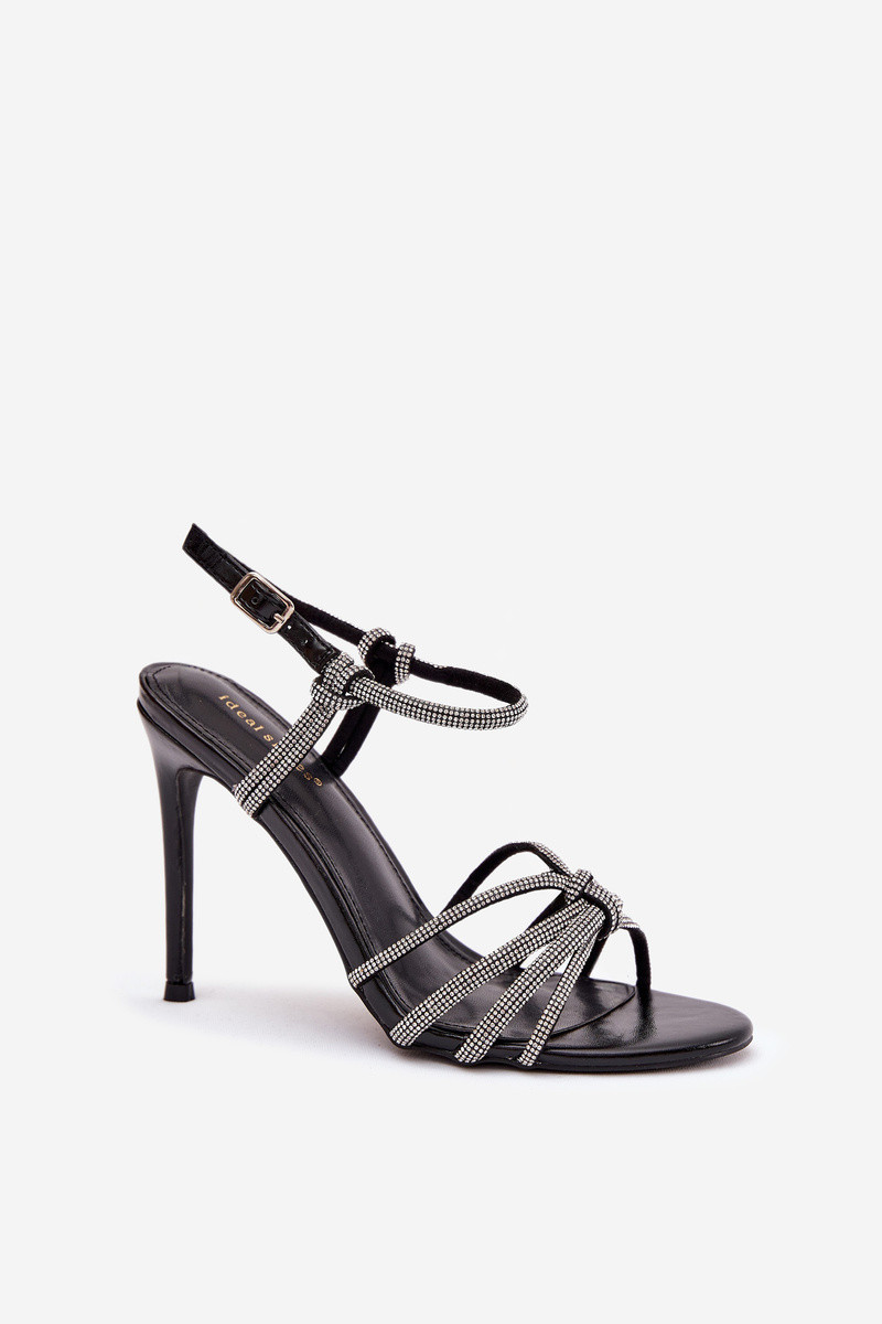 Mustad naiste sandaalid peenikeste kontsadega, rihmade ja tsirkonitega Tanelle