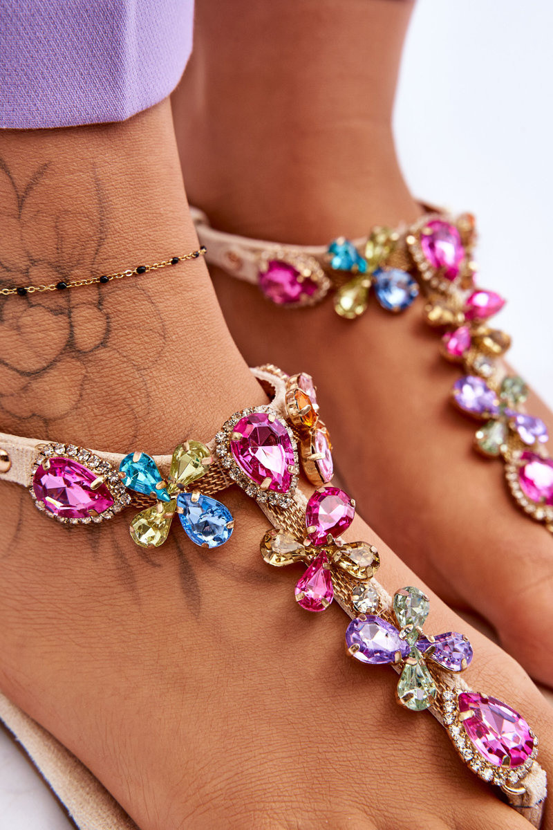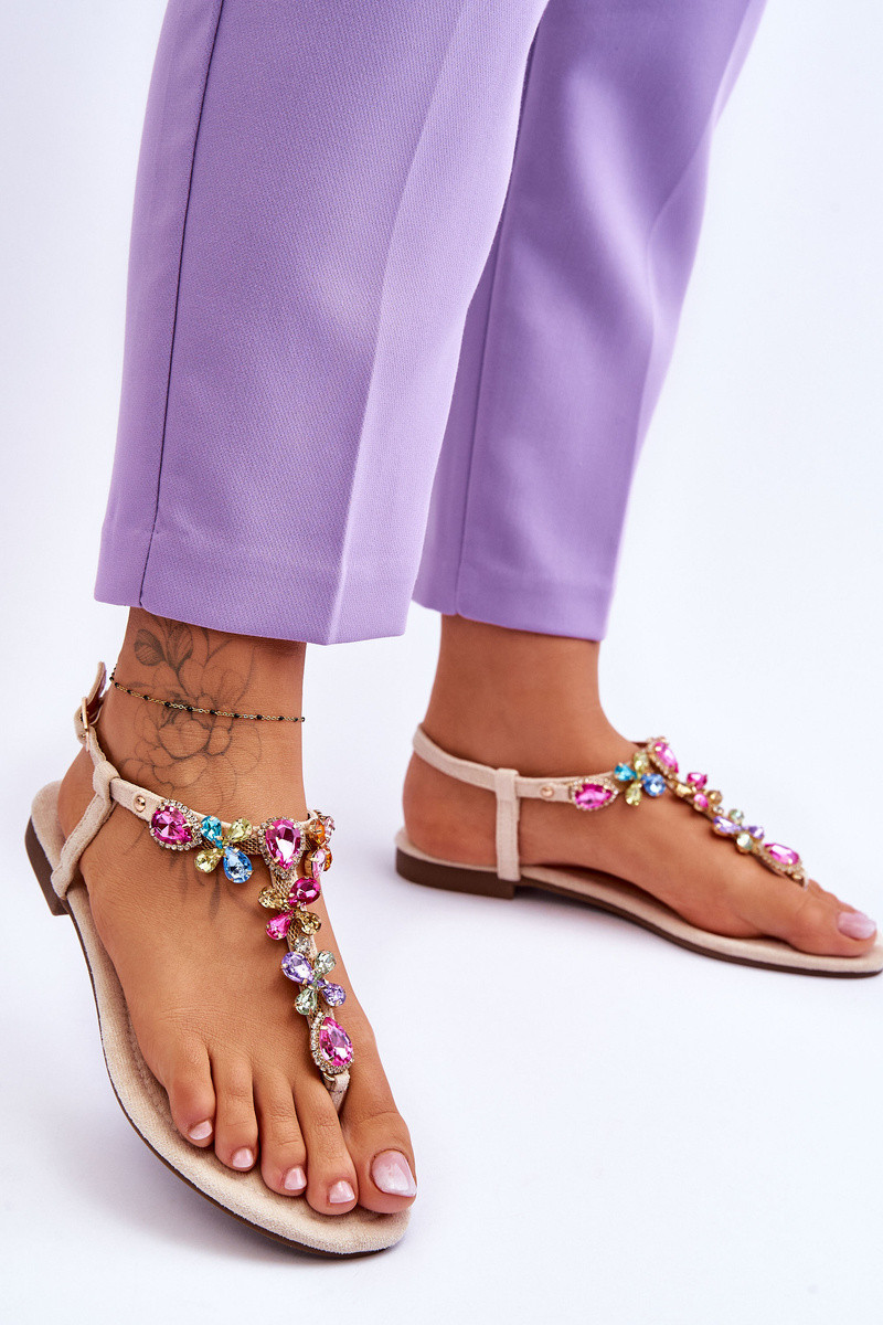 Seemisnahast kingad moodsad varbavahe-sandaalid Koos kividega beeži värvi Frency