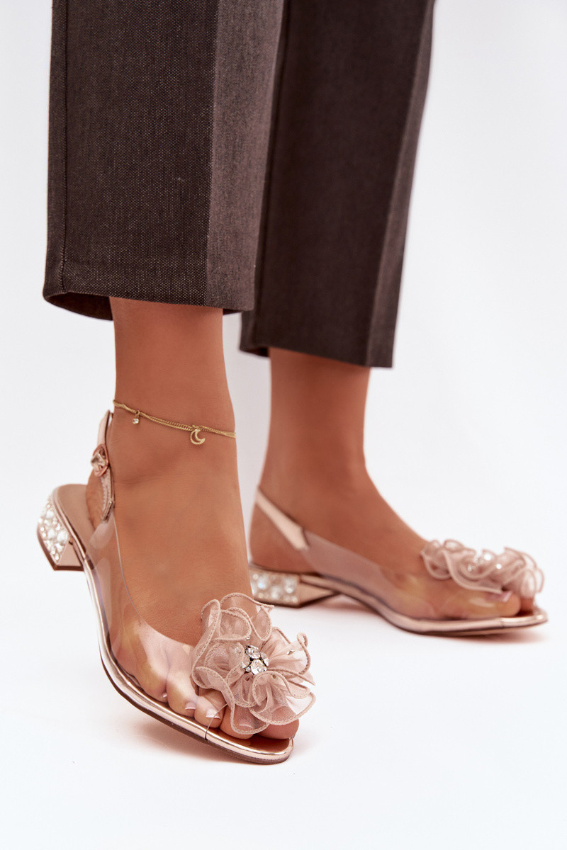 D&A MR52-230 roosa kuldne läbipaistvad sandaalid madalal kontsal, säravate silmade ja kaunistustega