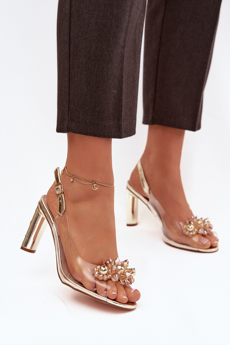 D&A MR52-232 kuldne läbipaistvad sandaalid kontsadega ja ilusate detailidega