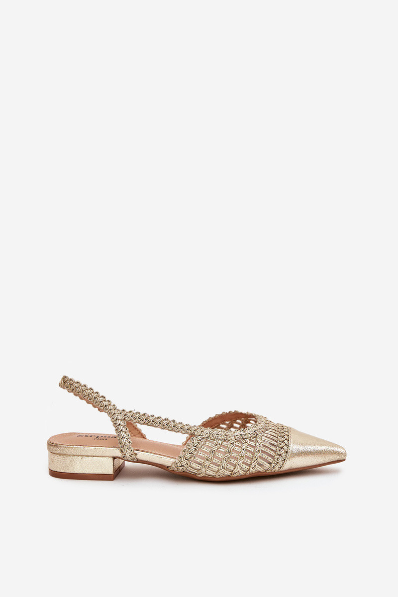 Naistelised kuldse värvi sandaalid punutud detailiga „Nivorra”