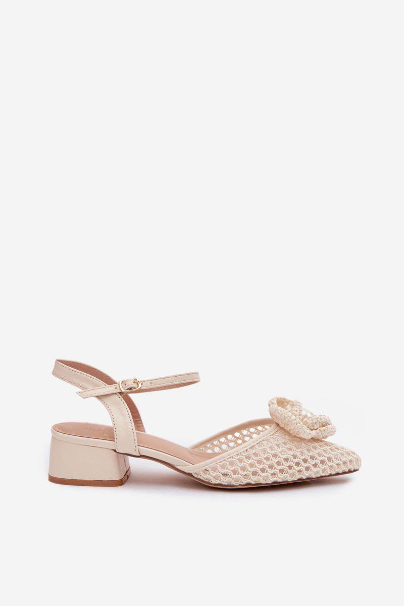 Naiste sandaalid kontsaga ja kaunistustega, elevandiluust värviga Vionessa