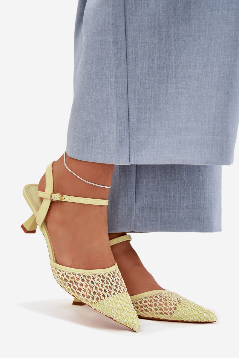 Pealistesandaalid kõrge jämeda kontsaga võrguga Kollased Brilora