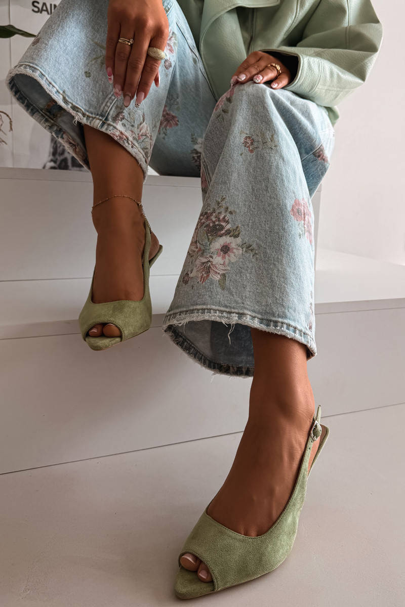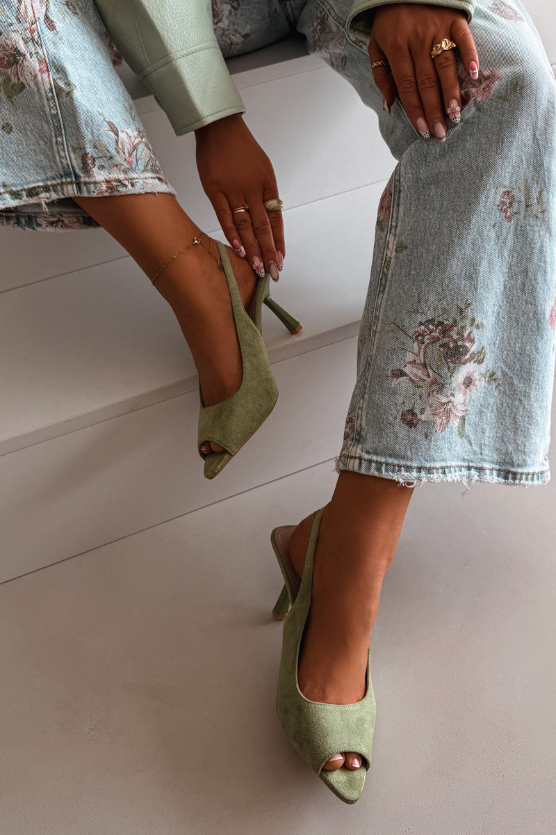 Naistele mõeldud rohelised kunstnahast sandaalid peenikeste kontsadega