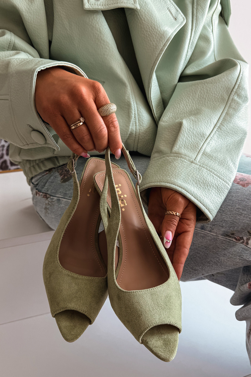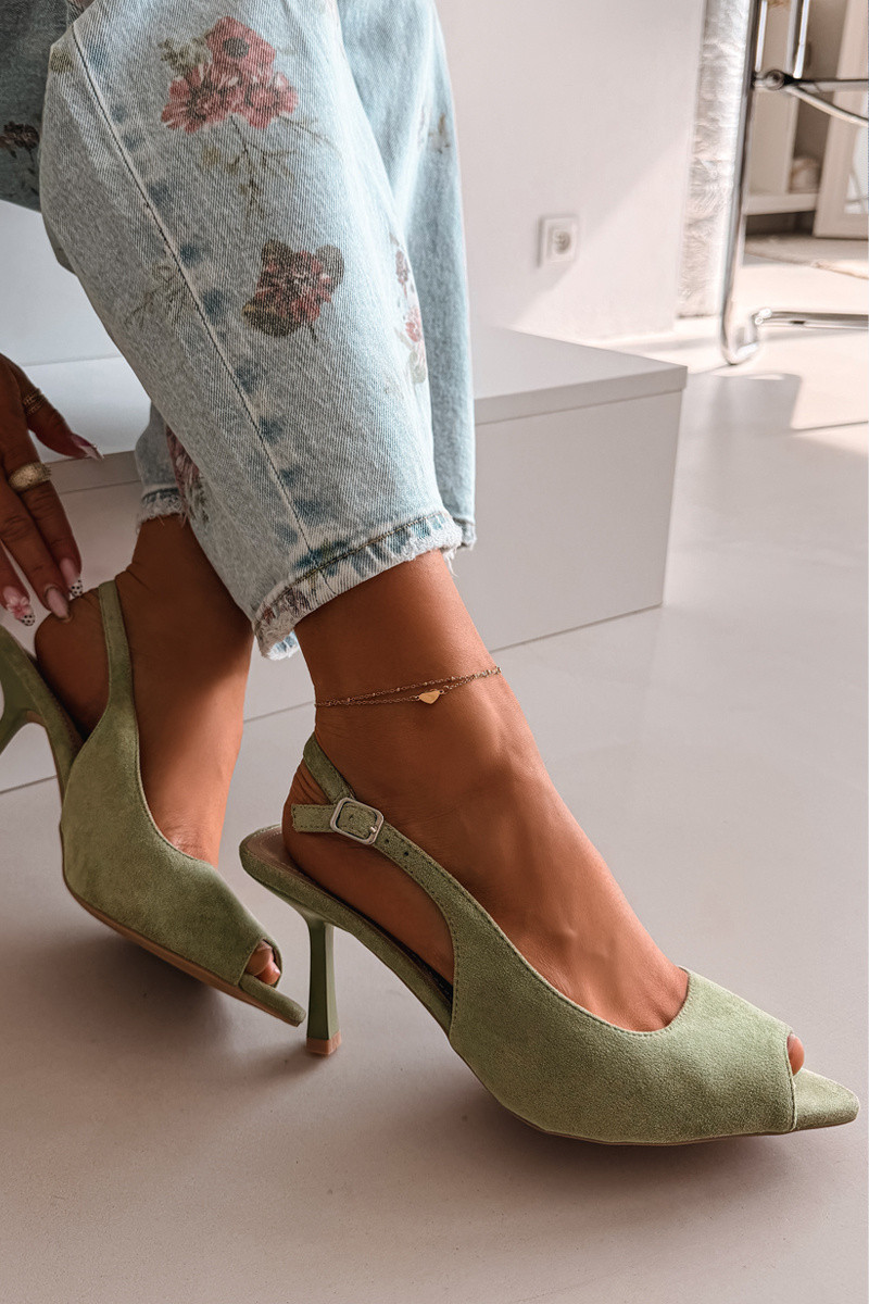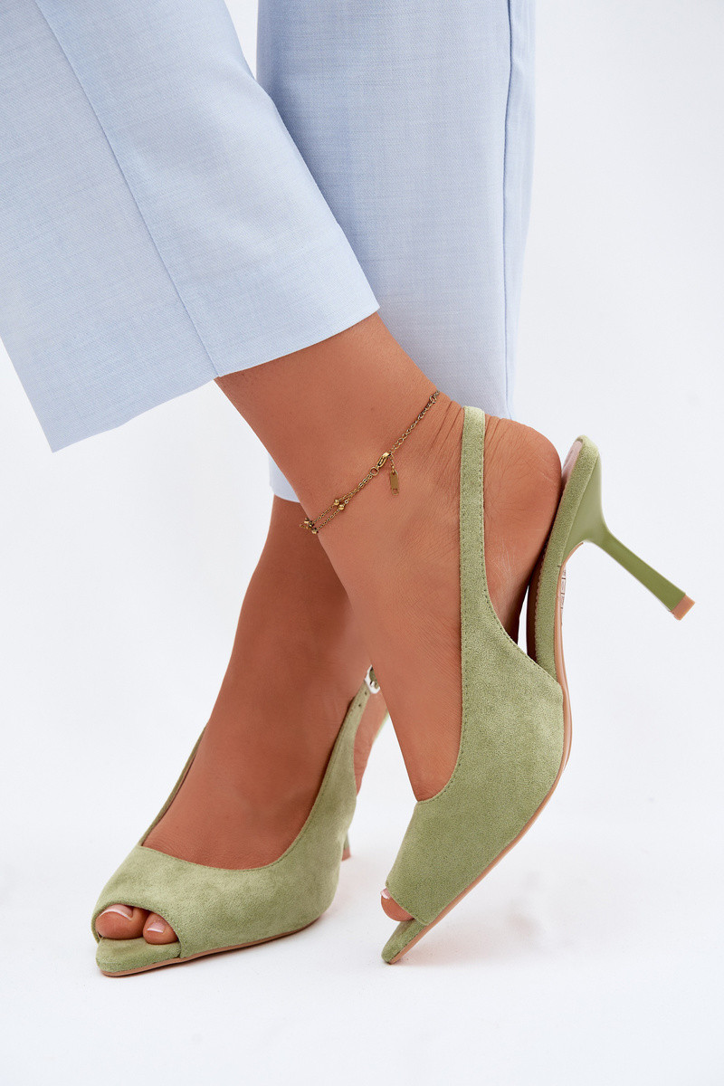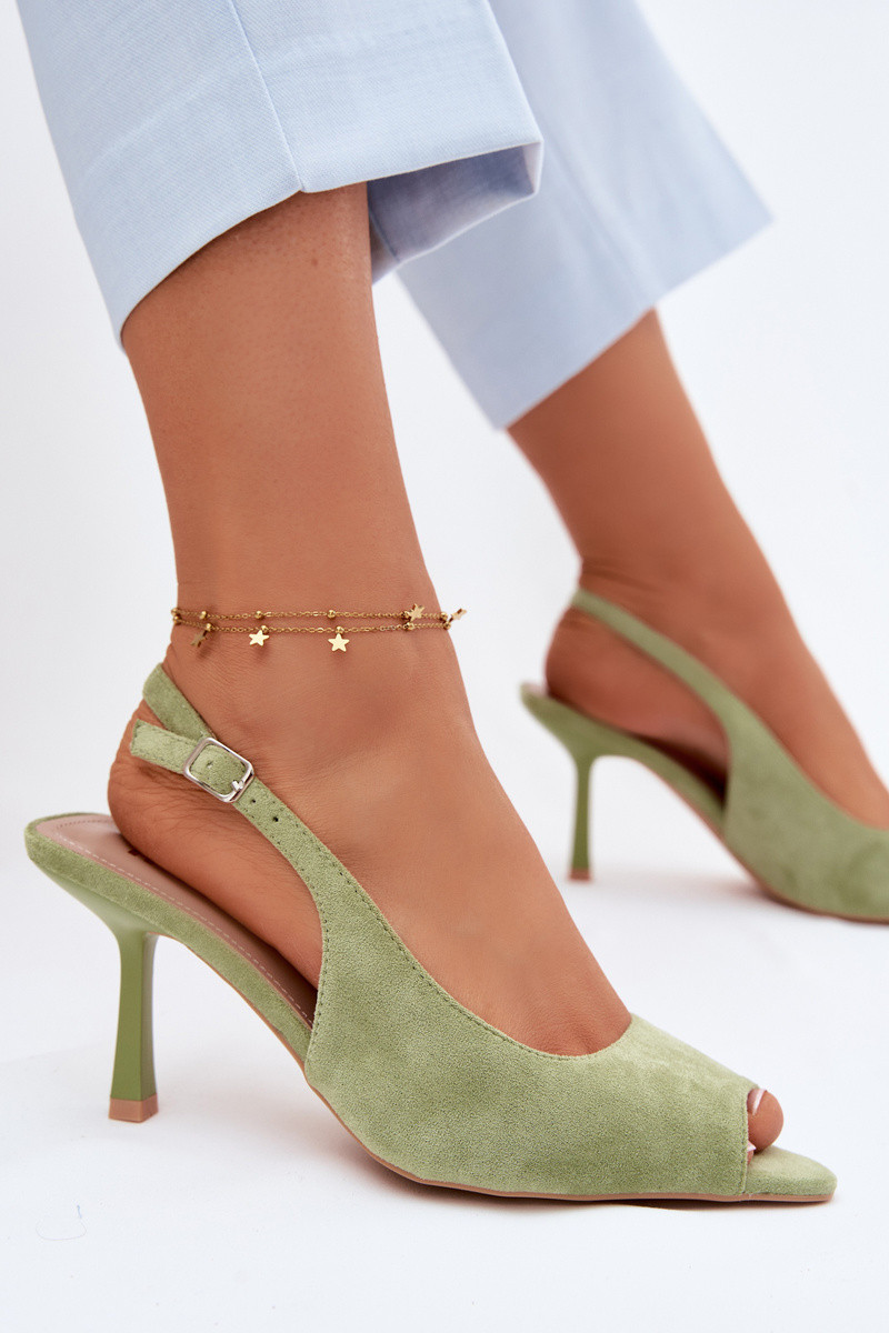 Naistele mõeldud rohelised kunstnahast sandaalid peenikeste kontsadega