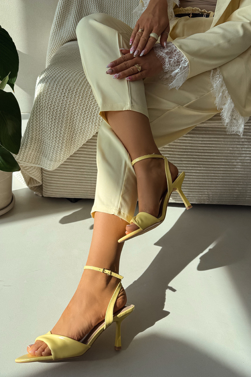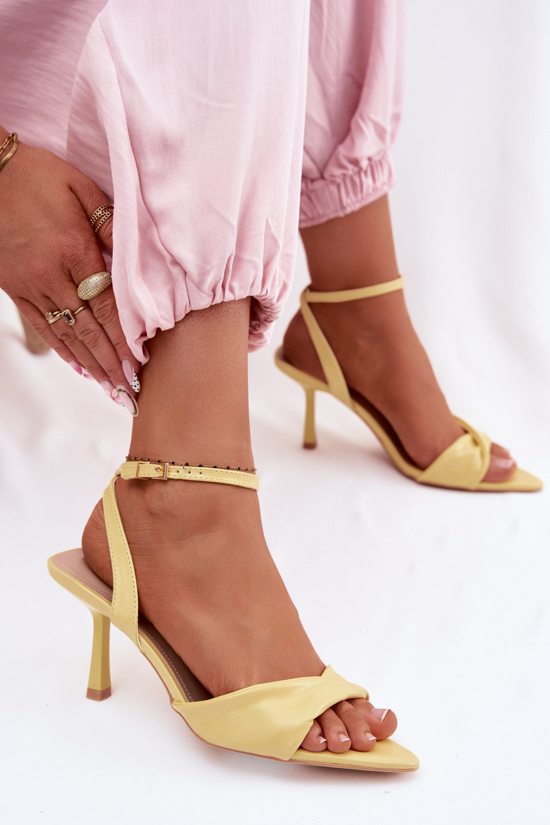 Naistele mõeldud kollased kunstnahast sandaalid peenikeste kontsadega