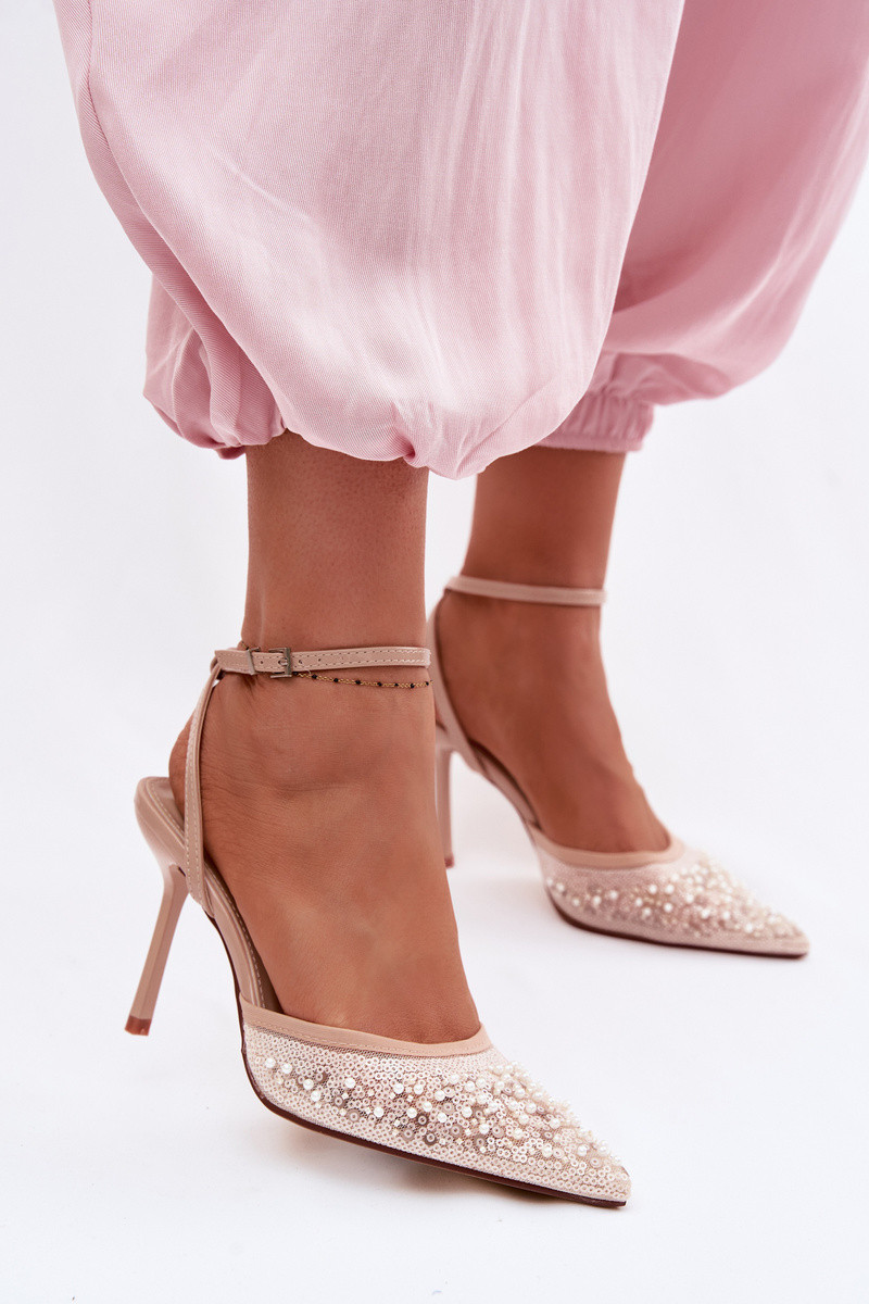 Pealistesandaalid kõrge jämeda kontsaga Kaunistatud litritega I Korallidikami beeži värvi Nedira