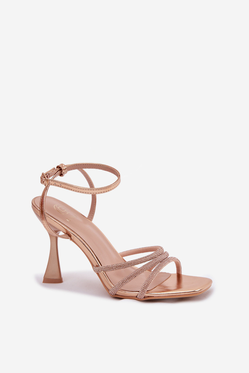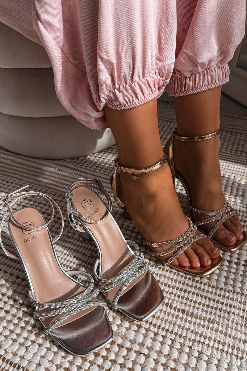 Naiste sandaalid kontsadega kaunistatud rihmadega šampanja värvi Gedira
