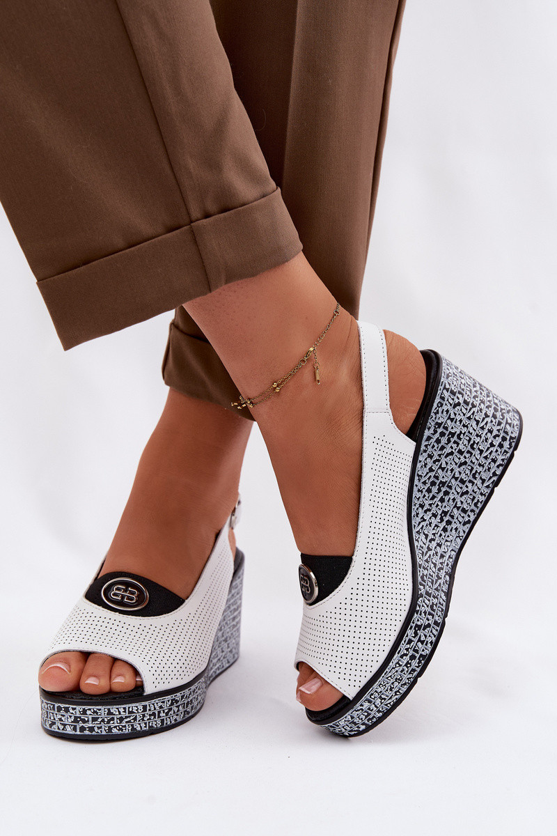 Nahast platvormsandaalid S.Barski LR61-7010 valged