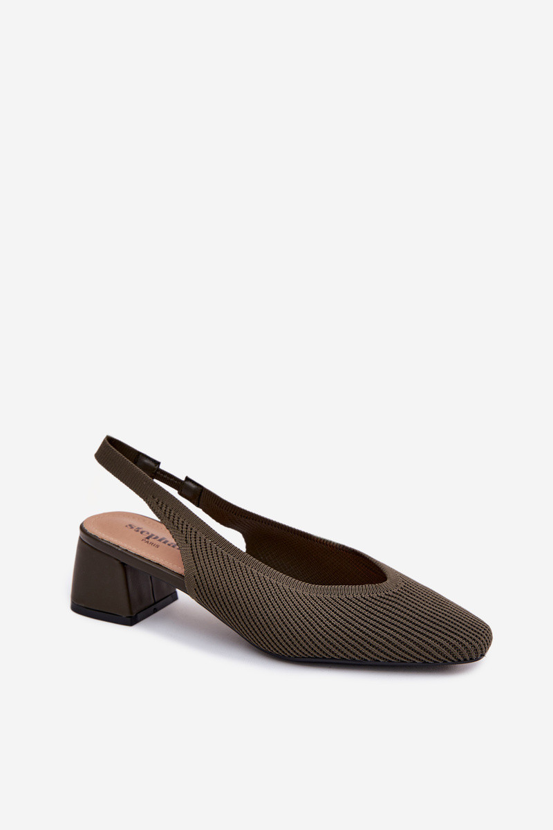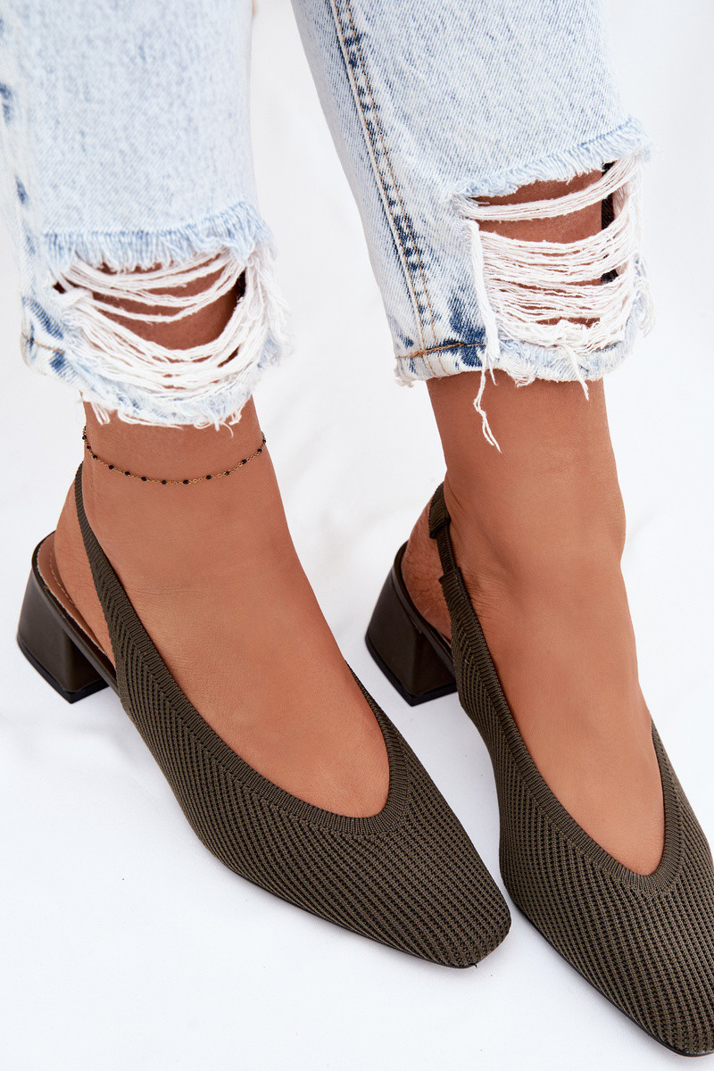 Riidest Pealistesandaalid kõrge jämeda kontsaga khakivärvi Sellel onrcelle