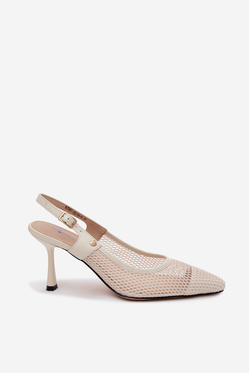 Pealhk Ažuursed sandaalid Kingad Pealiste omad kõrge jämeda kontsaga Sellel onciejka K7507-22 Elevandiluu värvi