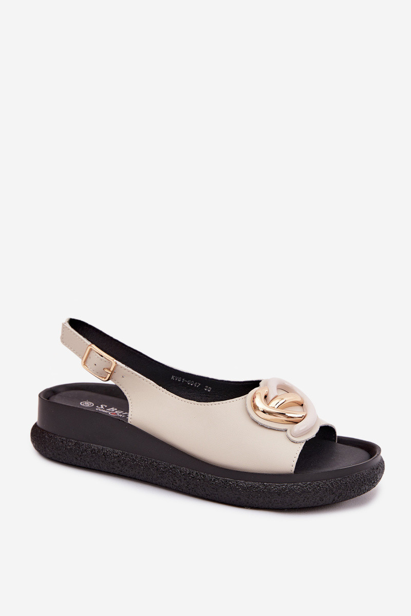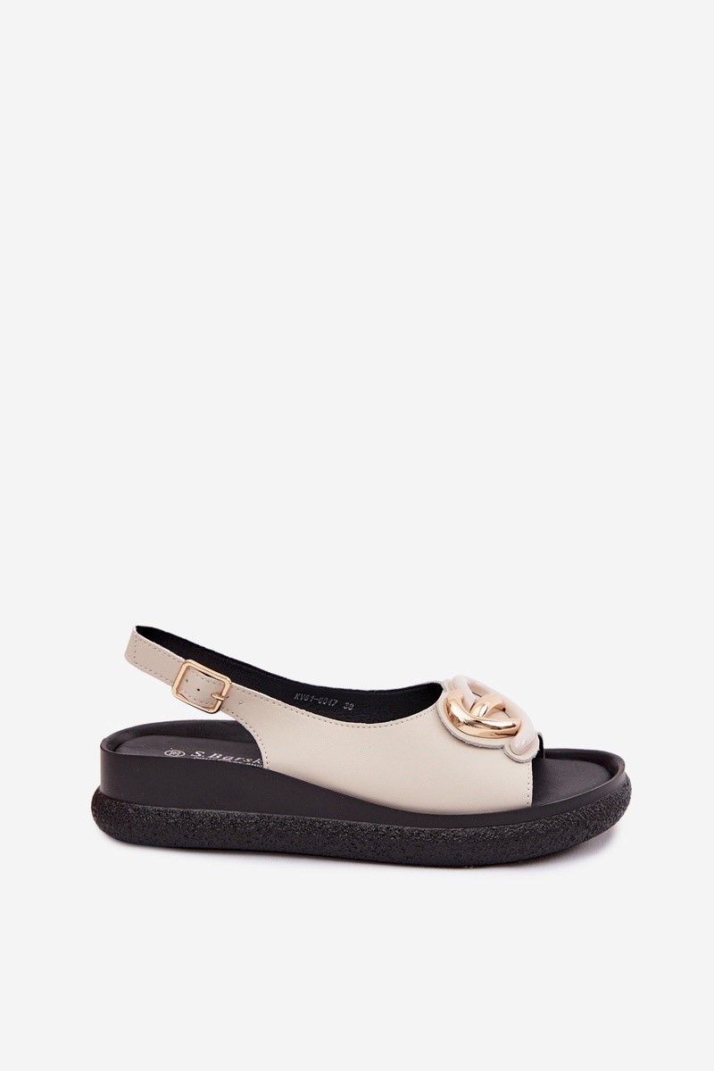 Nahkseotud platvormsandaalid kaunistustega sandi värvuses