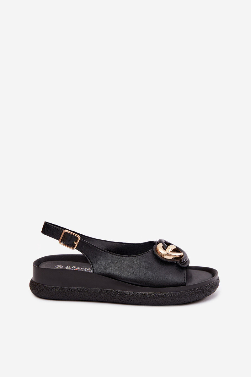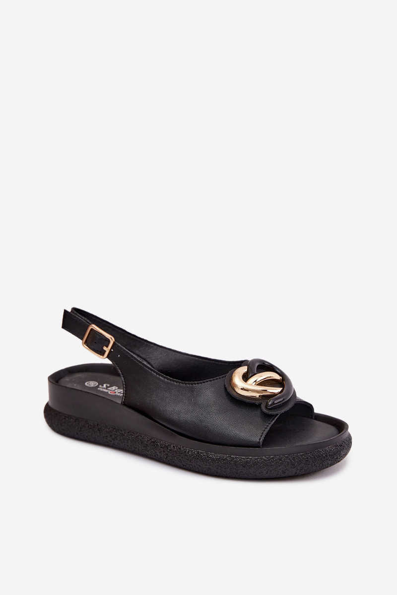 Nahkseotud platvormsandaalid kaunistustega mustas värvitoonis
