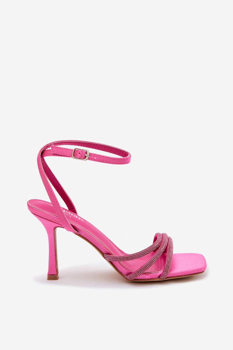 Pealistesandaalid kõrge jämeda kontsaga Triibud säravate kristallidega Violetne värv...