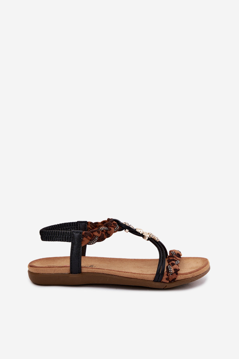Mustad naiste sandaalid rihmade ja leopardimustritega Nusoreth