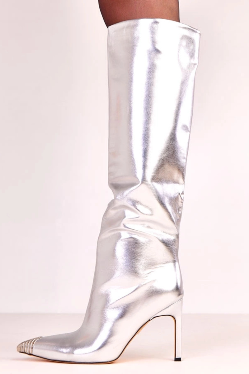 Janisa hõbedased elegantsed üle põlve saapad metallist otsaga