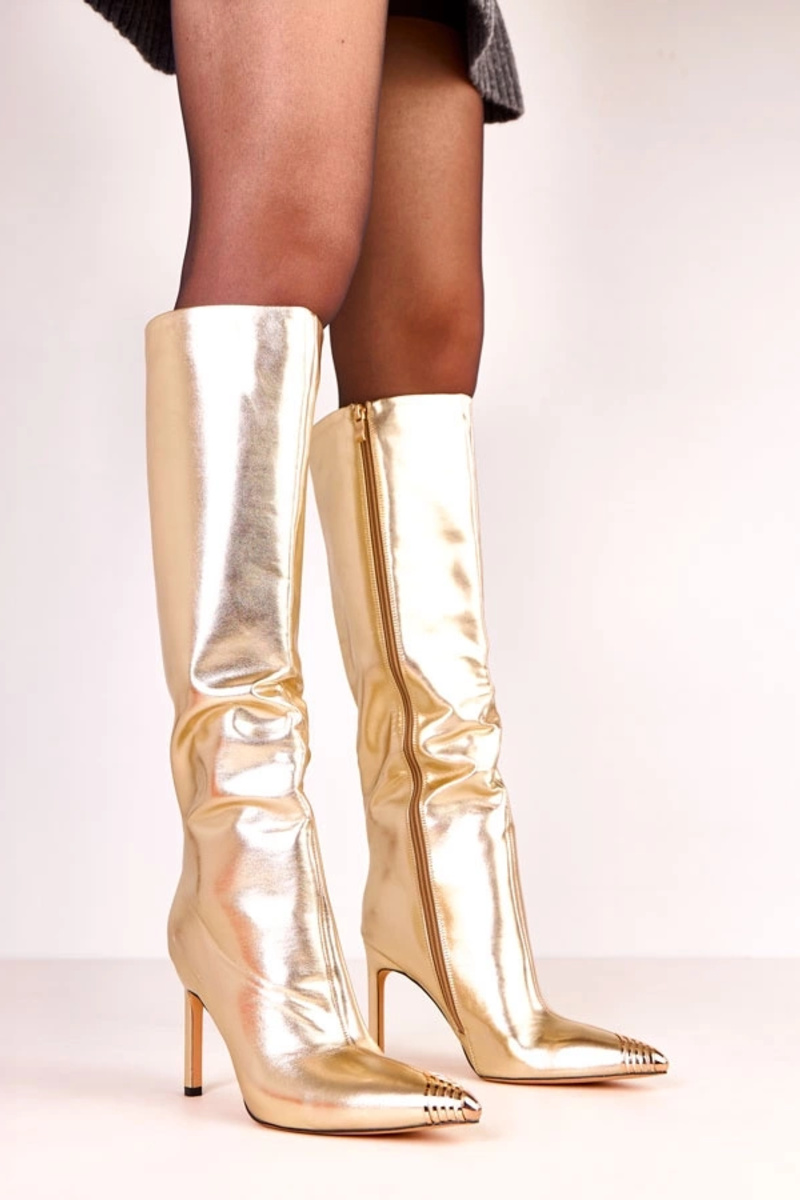 Janisa kuldsed elegantsed üle põlve saapad metallist otsaga