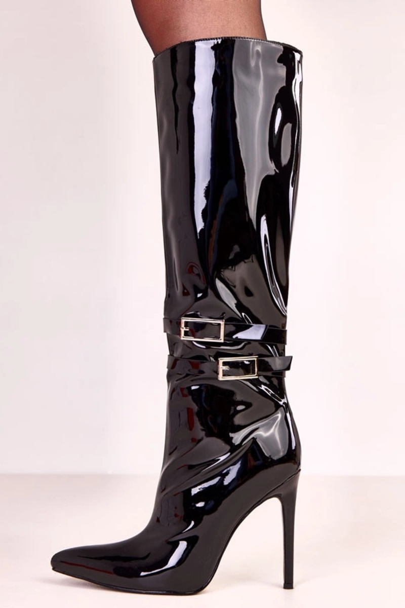 Mustad lakitud kõrged saapad dekoratiivse pandlaga Asheris