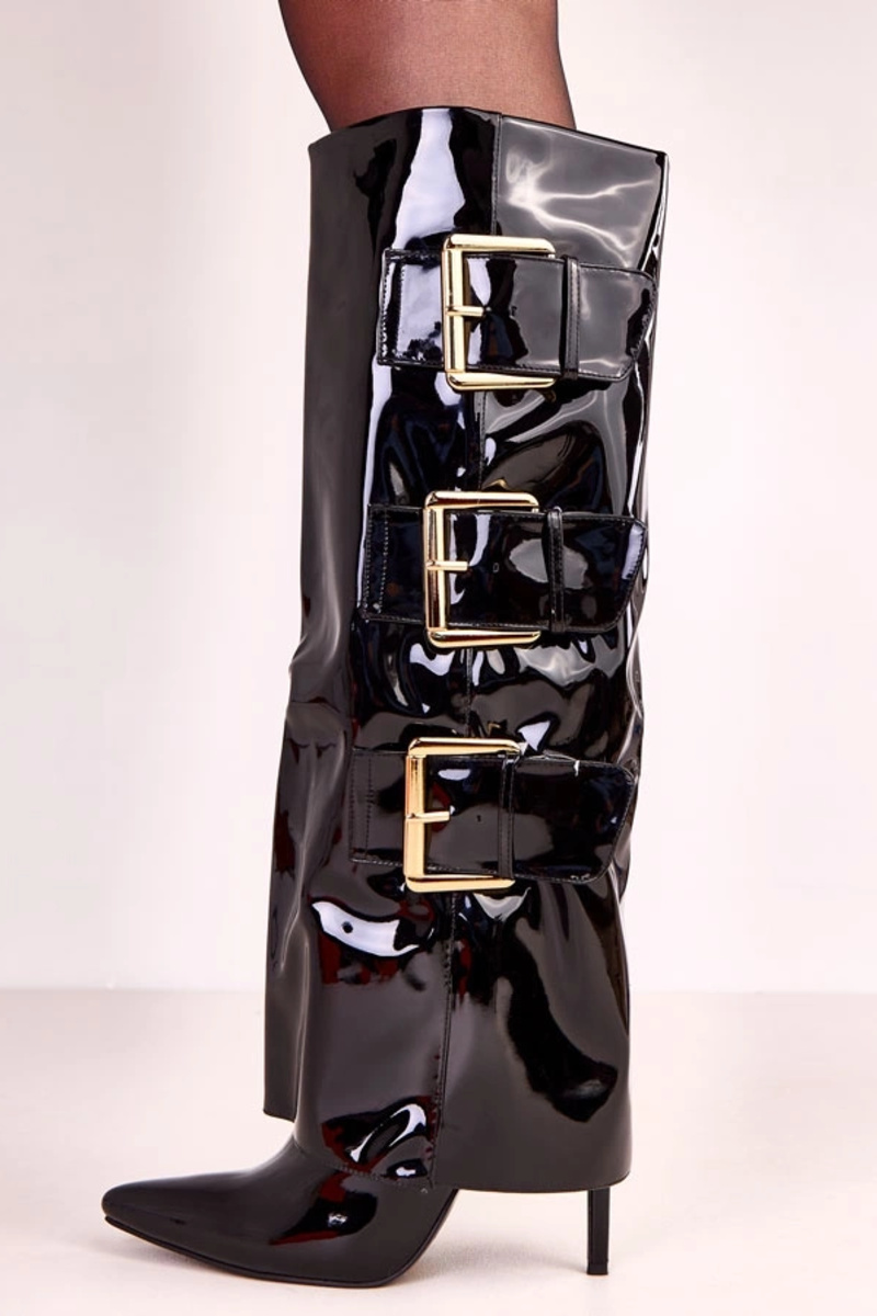 Mustad lakotie saapad üleskeeratud säärega Karela