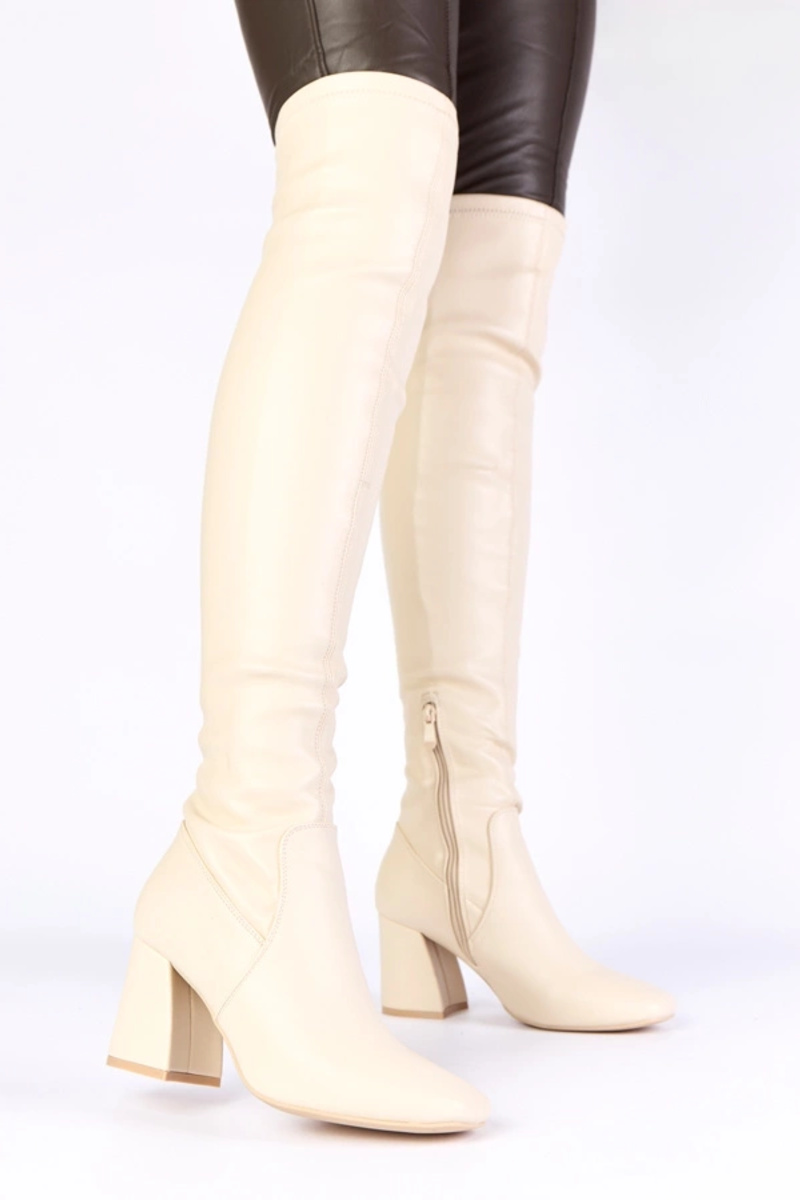 Kreemjas pikad saapad põlvedest üle kontsal Louna