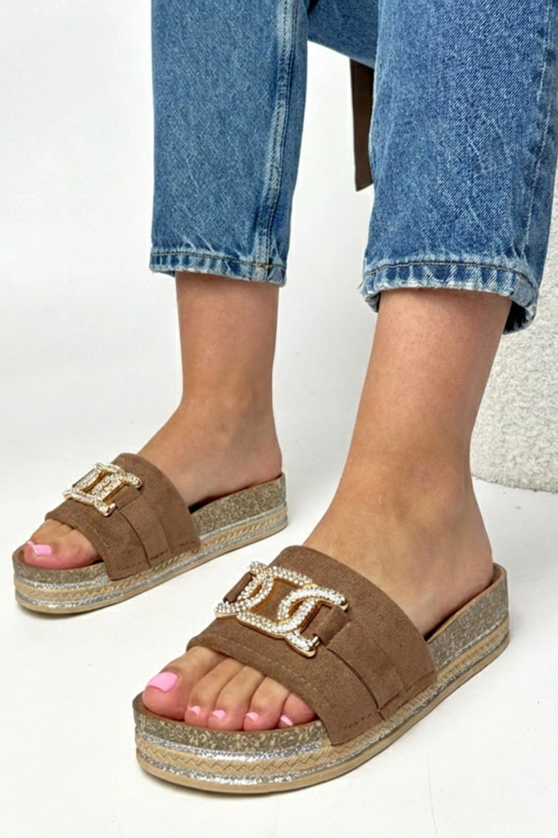 Pruunid platvormi sussid sädelevate kaunistustega Faustine