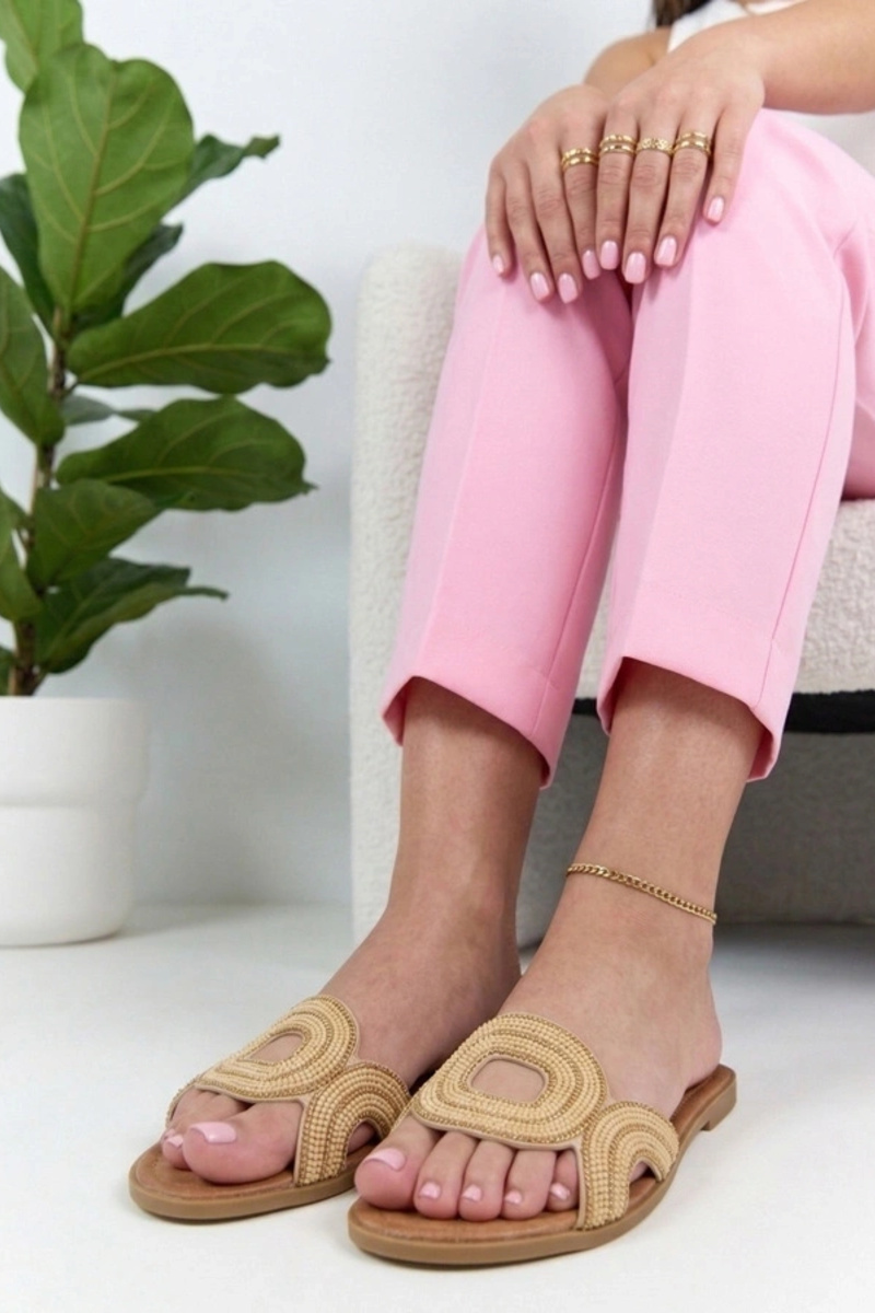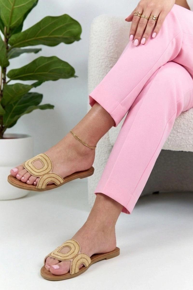Beżowe Klapki Zdobione Cyrkoniami Olivia
