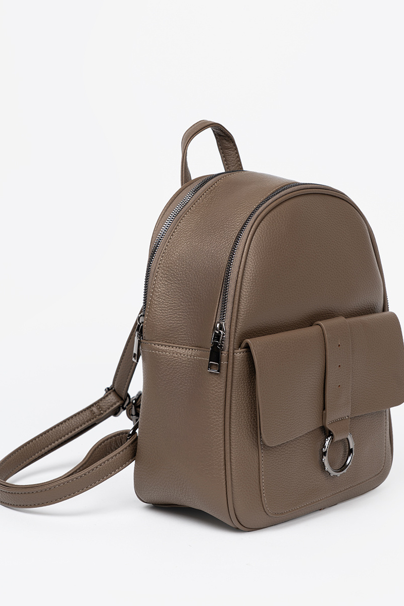 Tumedat beeži värvi kunstnahast seljakott