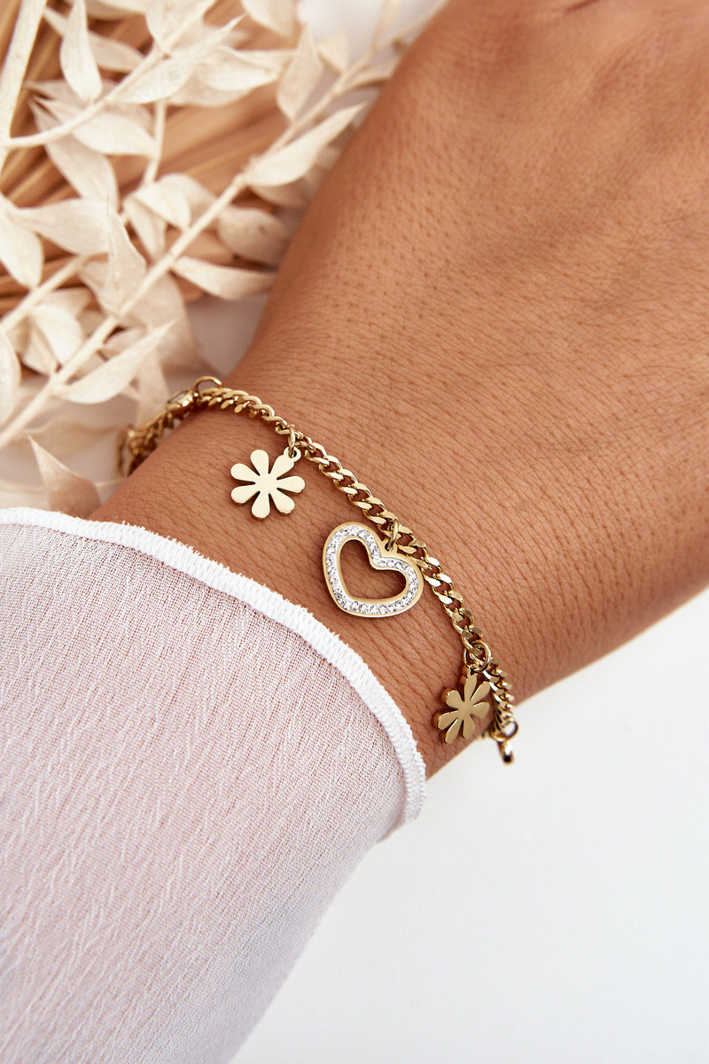 Rikkalik käevõru lillede ja südamega kuldse värviga