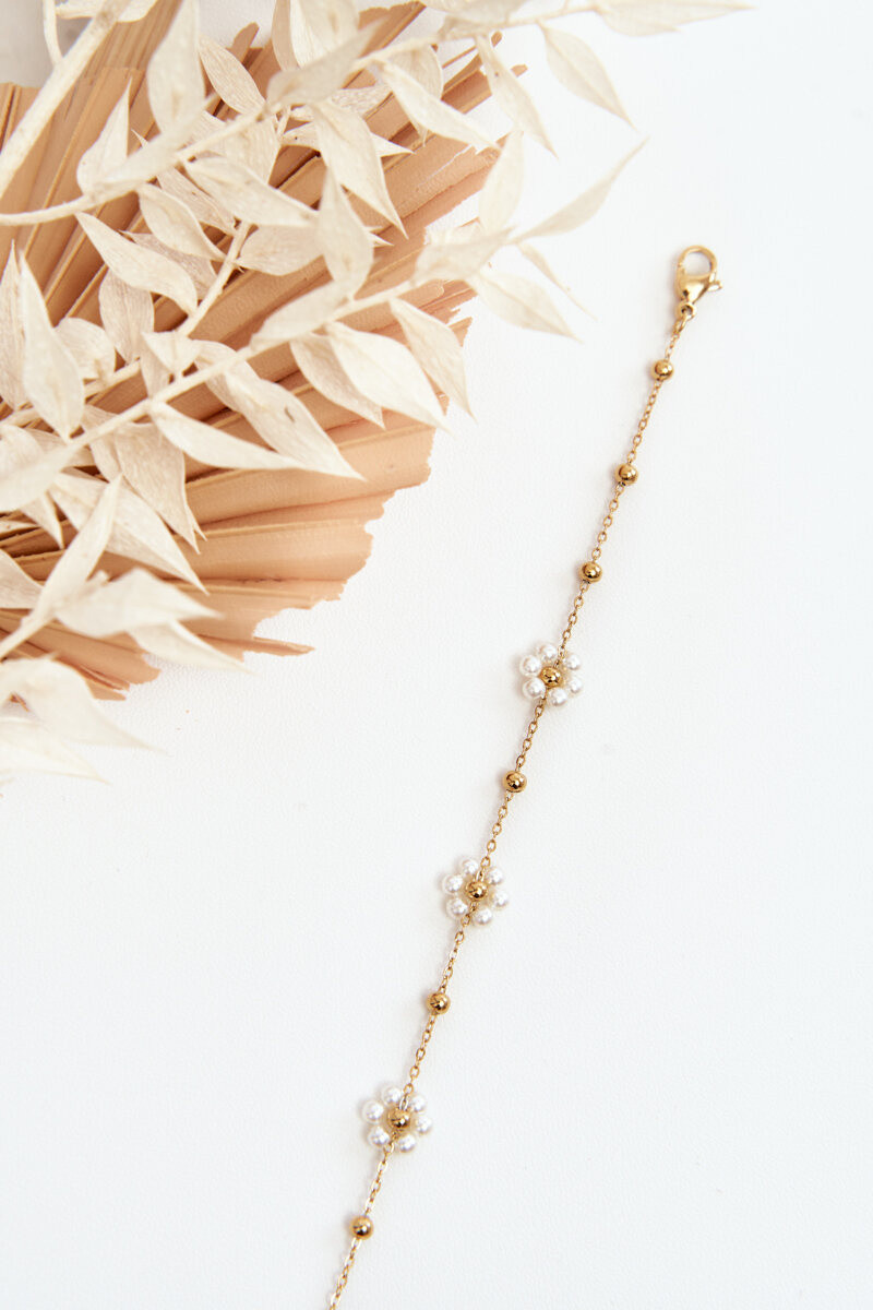 Rikkalik käevõru valgete lilledega kuldse värviga