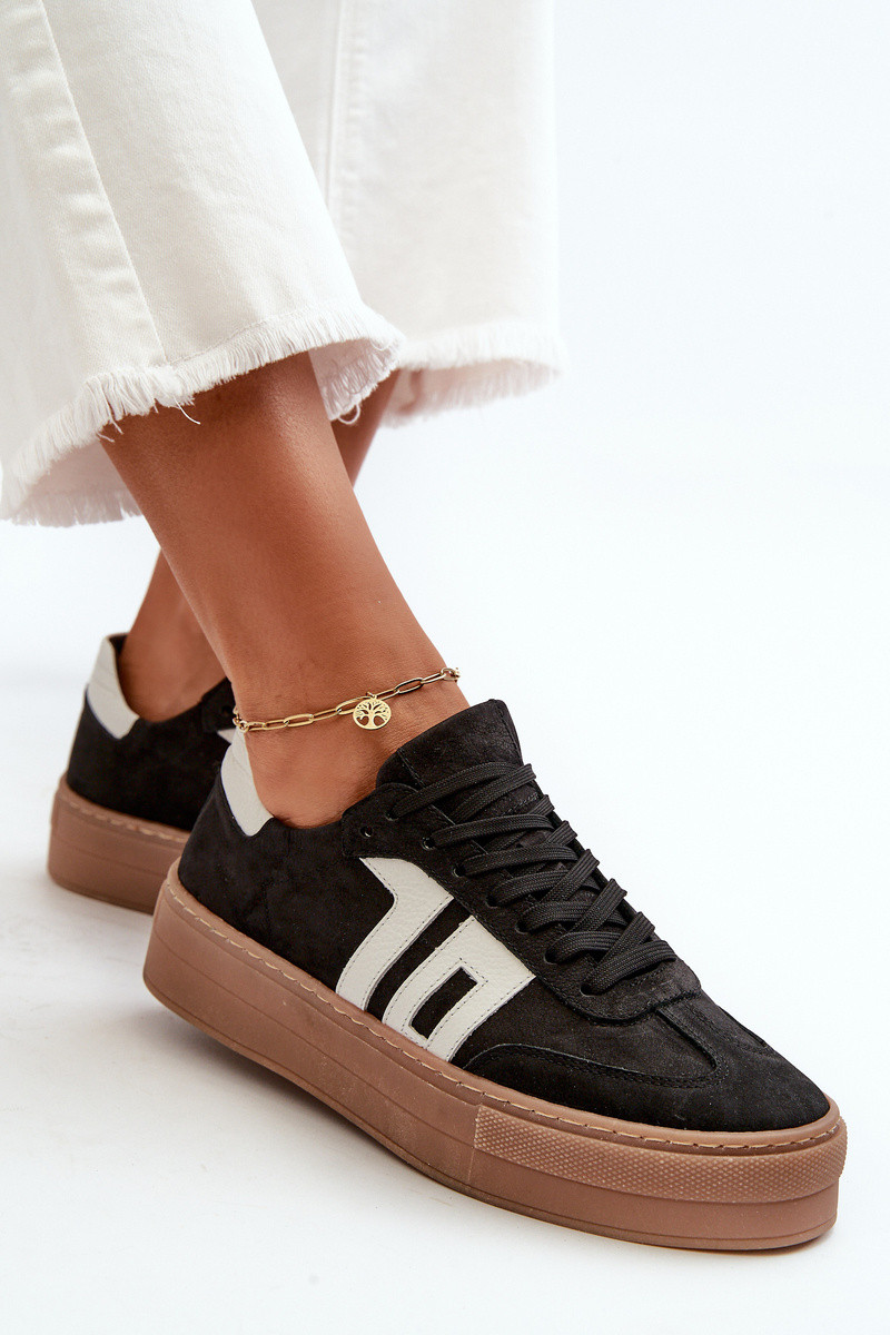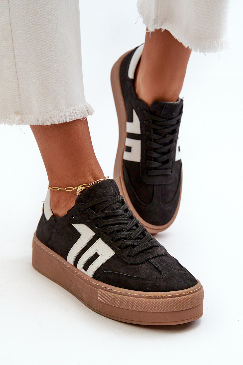 Zazoo N1095S2 nahkased sportlikud kingad naistele platvormiga must