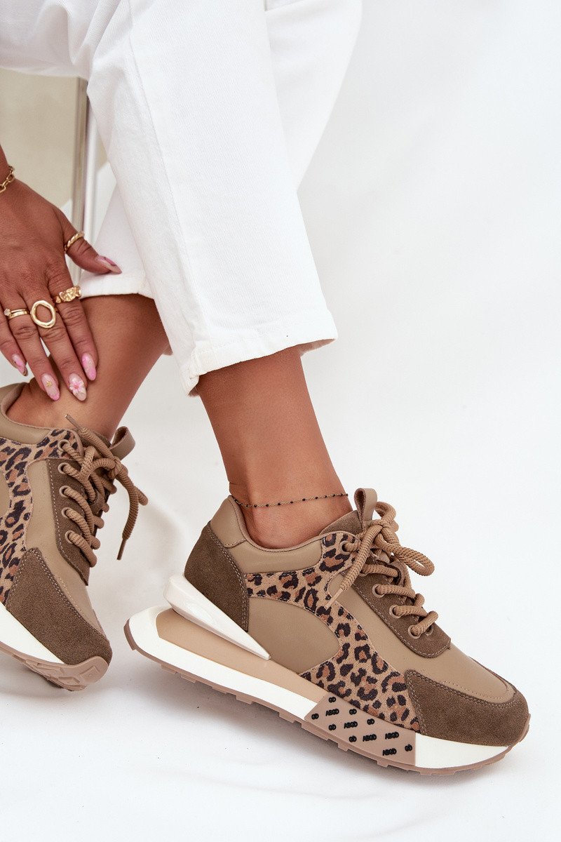 Nahast naisteriiklikud sportlikud kingad platvormiga ja leopardimustriga Artiker 55C0089 pruunid