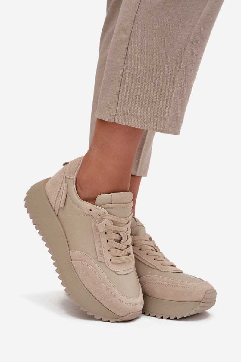 Nahast naiste spordijalatsid platvormiga Artiker 55C0021, liivakarva