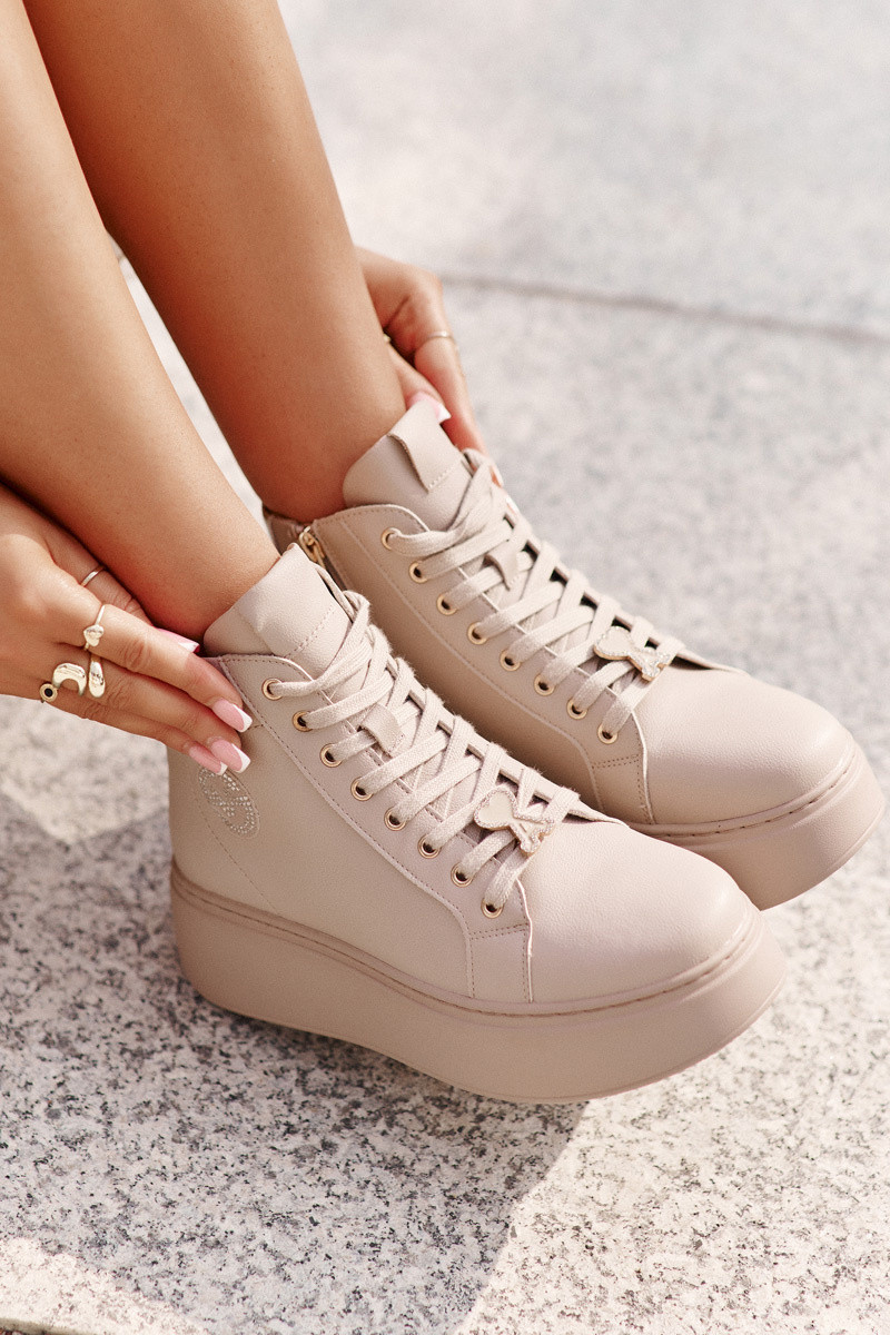 Kõrged nahast spordijalatsid naistele platvormiga Vinceza 66707 beeži värvi