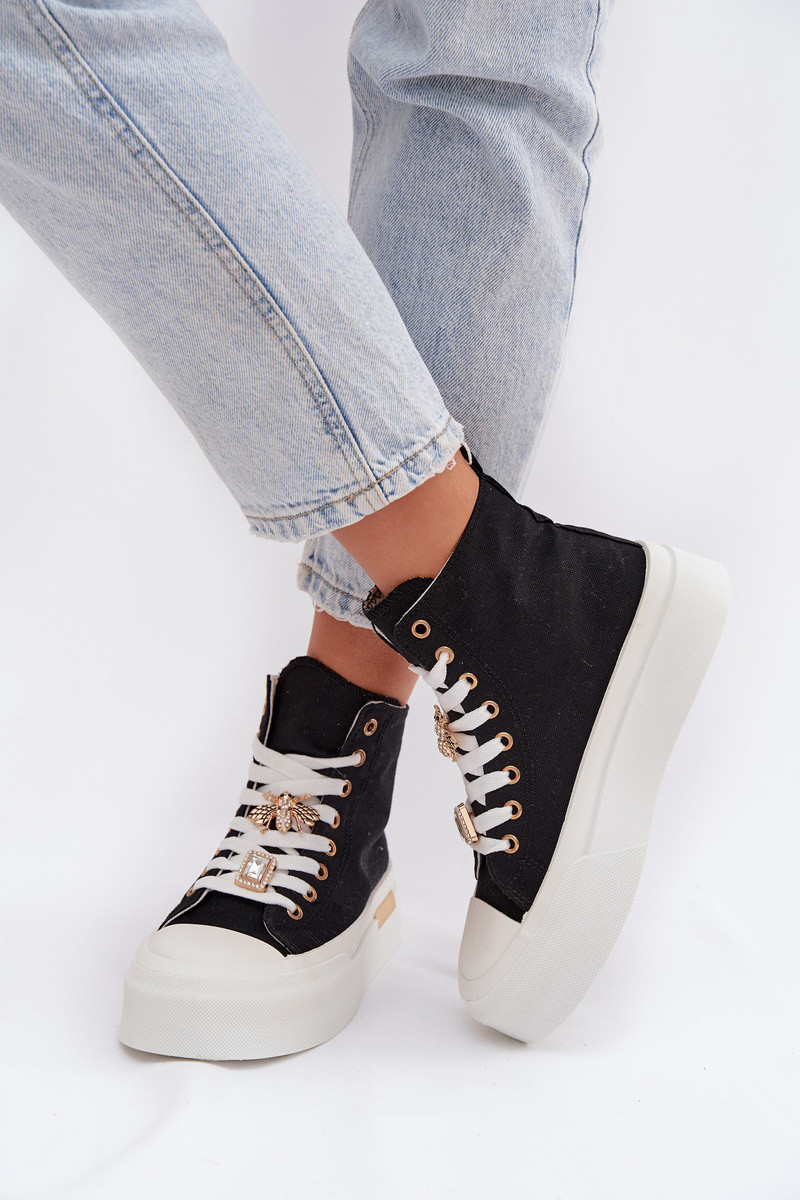 Gracella mustad vabaaja jalatsid platvormiga ja kaunistustega