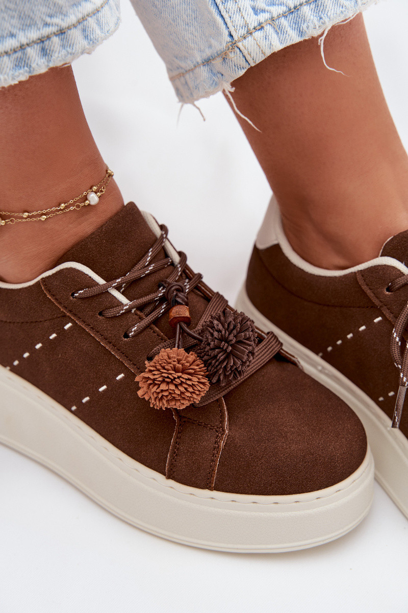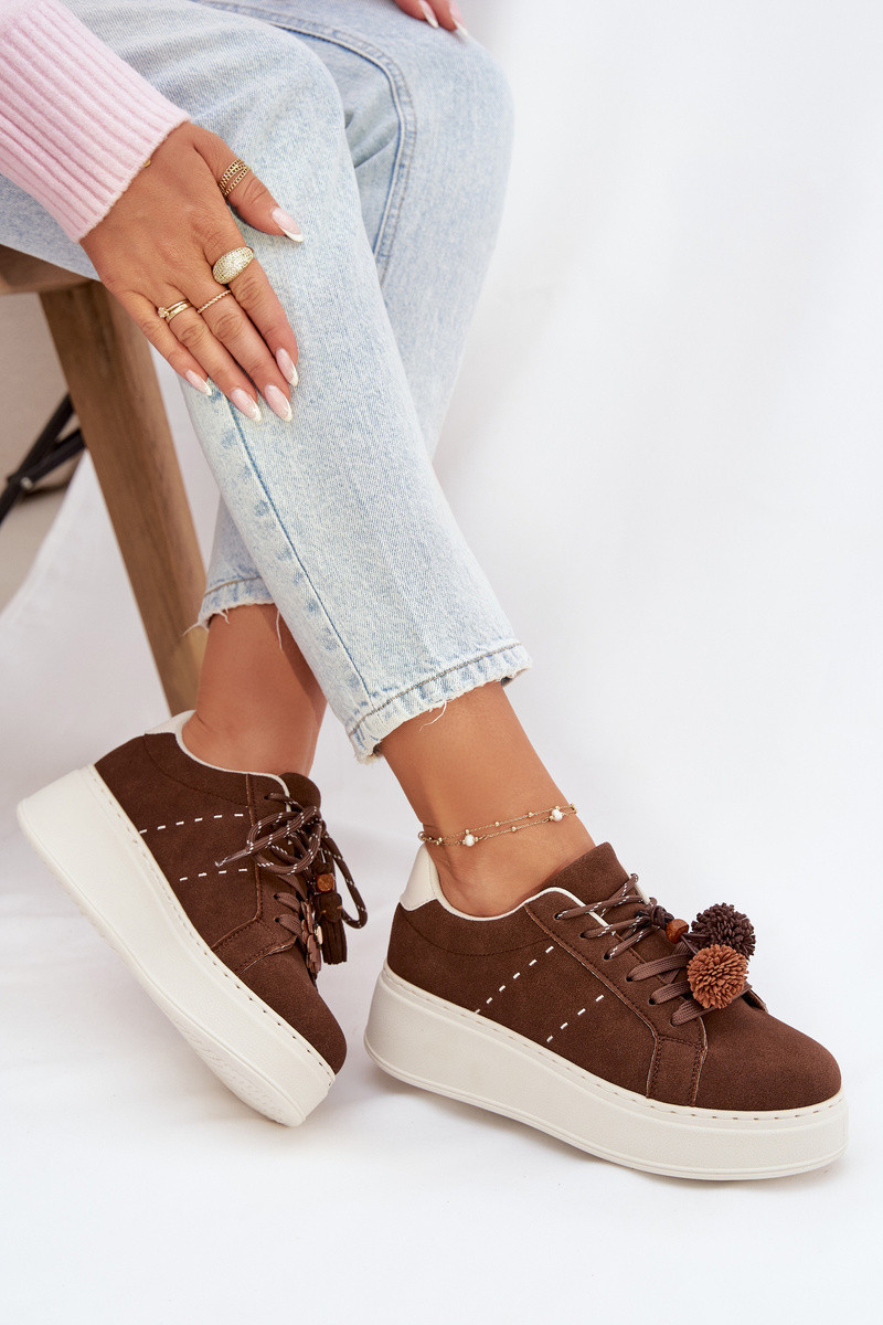Šokolaadikarva Corinna naiste platvormi spordijalatsid uhkete pomponidega