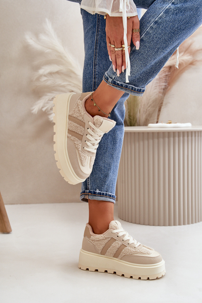 Naistel soojustatud spordijalatsid platvormiga beeži värvi Daivlene