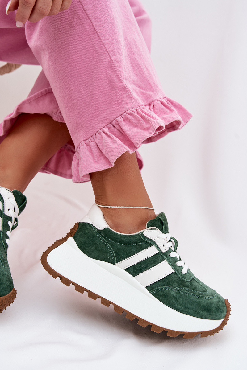 Sneakers tüüpi jalanõud seemisnahast platvormiga D&A GR61-5986 Rohelist värvi