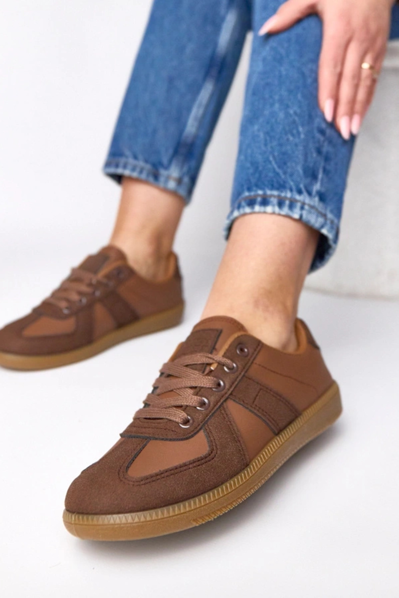 Brązowe sneakersy na platformie...