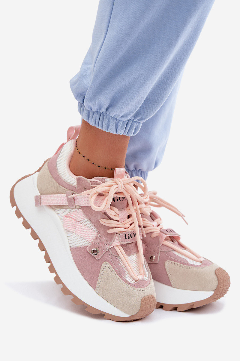 Sneakers tüüpi jalanõud platvormigaPealturalnego seemisnakhsedu GOE TT2N4022 Tumeroosad värvi