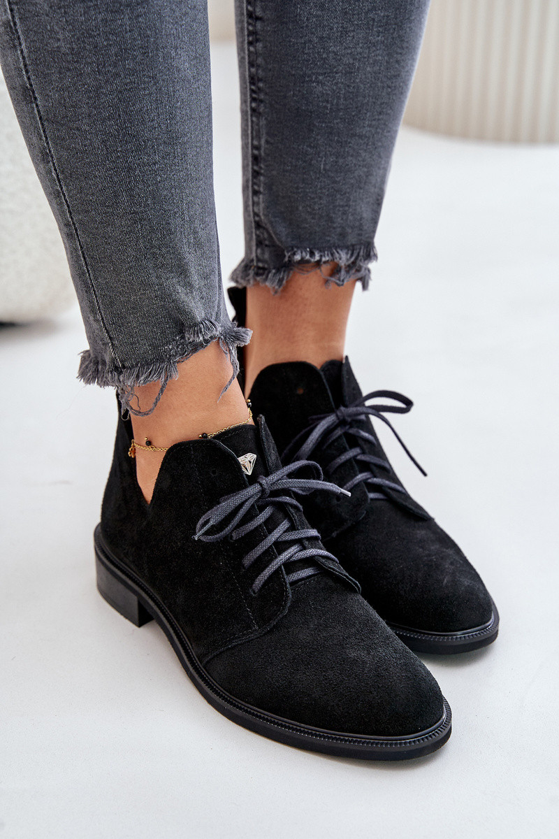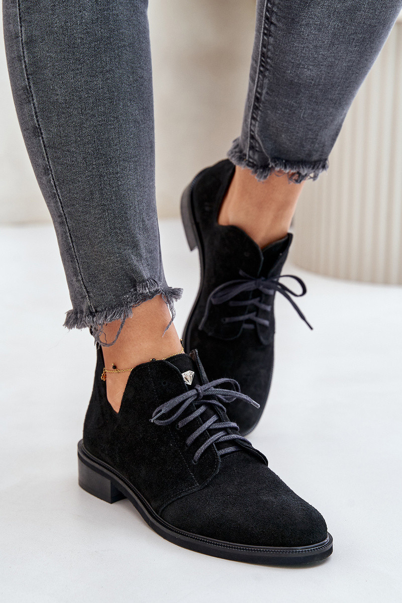 Zazoo 2959 Nubukist Oxfordi kingad paeltega ja laiad kontsad musta värvi