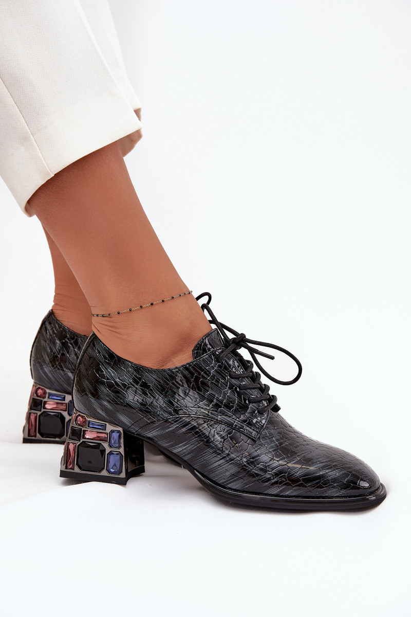 Stiilsed jalanõud Pealiste omad kõrge jämeda kontsaga kristallidega Artiker 57C0072 Halli värvi