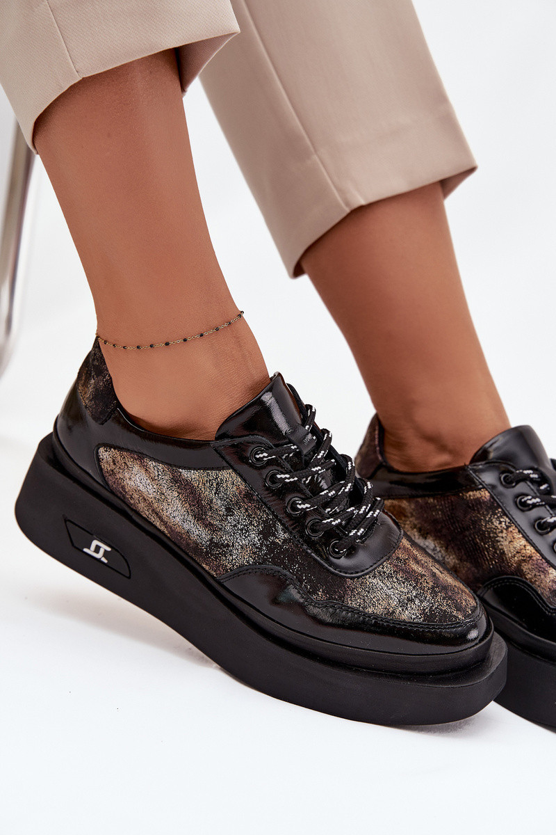Nahast naiste sidumisjalatsid platvormiga Artiker 57C2042, must ja kuld