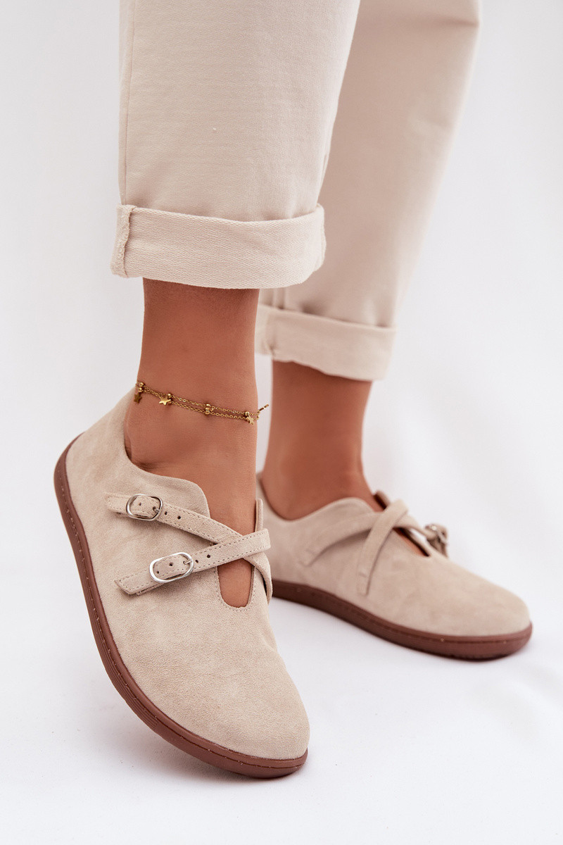 Nahast sametised naiste "Barefoot" saapad ribadega Zazoo N1271, elevandiluust värviga