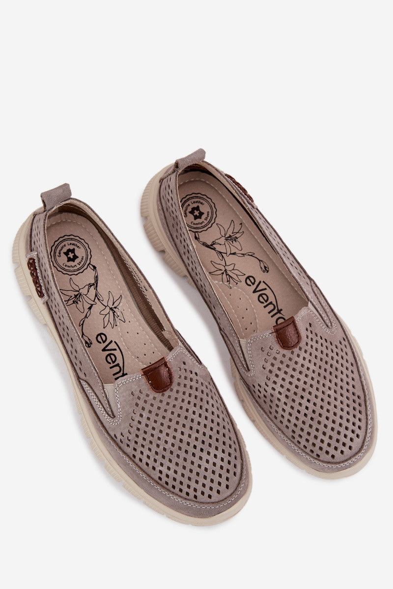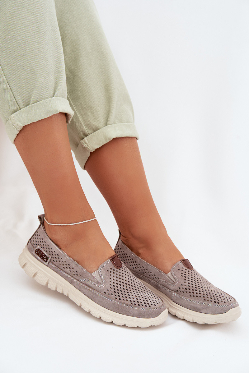Halli värvi jalanõud ažuursete elementidega naturaalsest sametist Ravinette